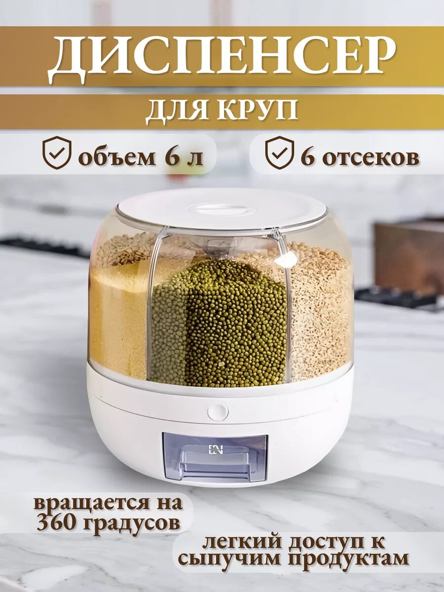 10 цен на Дозатор диспенсер для сыпучих продуктов, 6 секций, 6л.