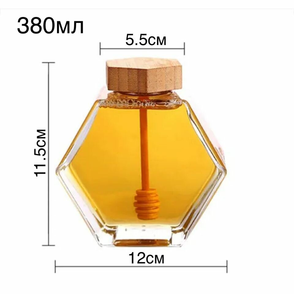 Стеклянная банка 380мл для меда и варенья. Банка с крышкой в комплекте деревянная ложка веретено информация: