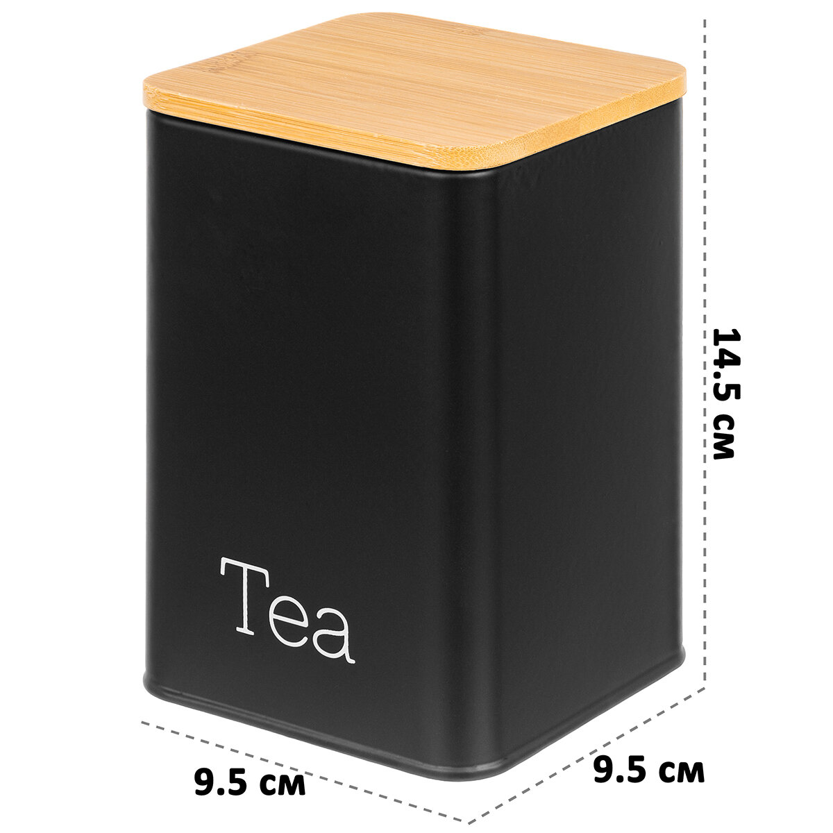 | Дополнительная информация | Набор 3 банок для сыпучих продуктов "Чай, кофе, сахар" 9,5х9,5х14,5 см 1,1 л - каждая, черный, высота без крышки 14 см, с бамбук.крышками, |