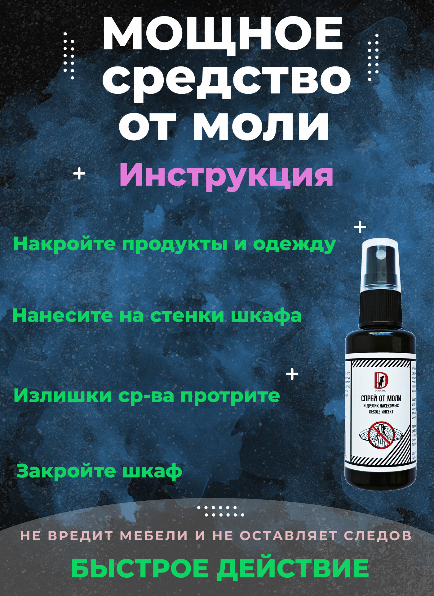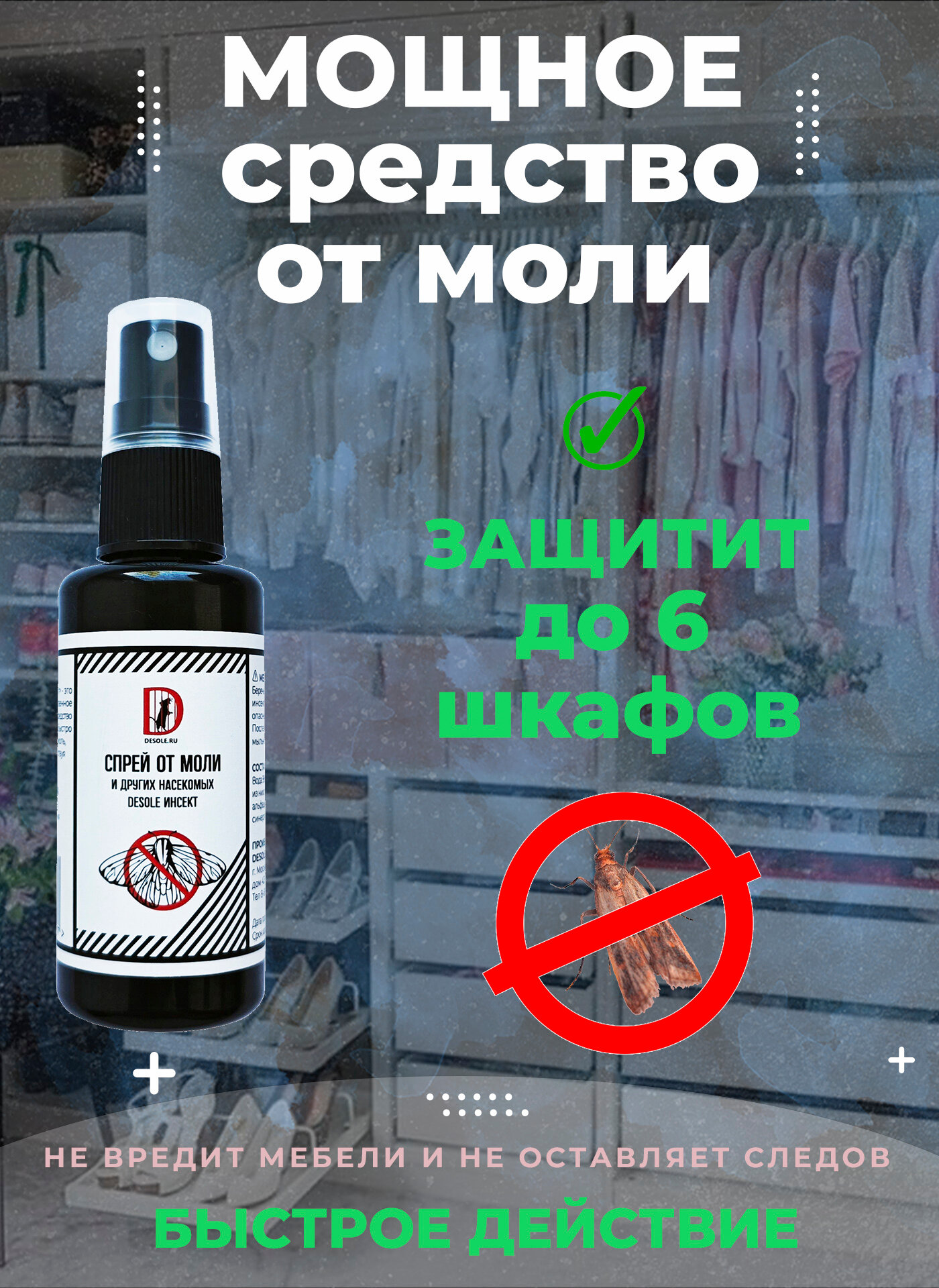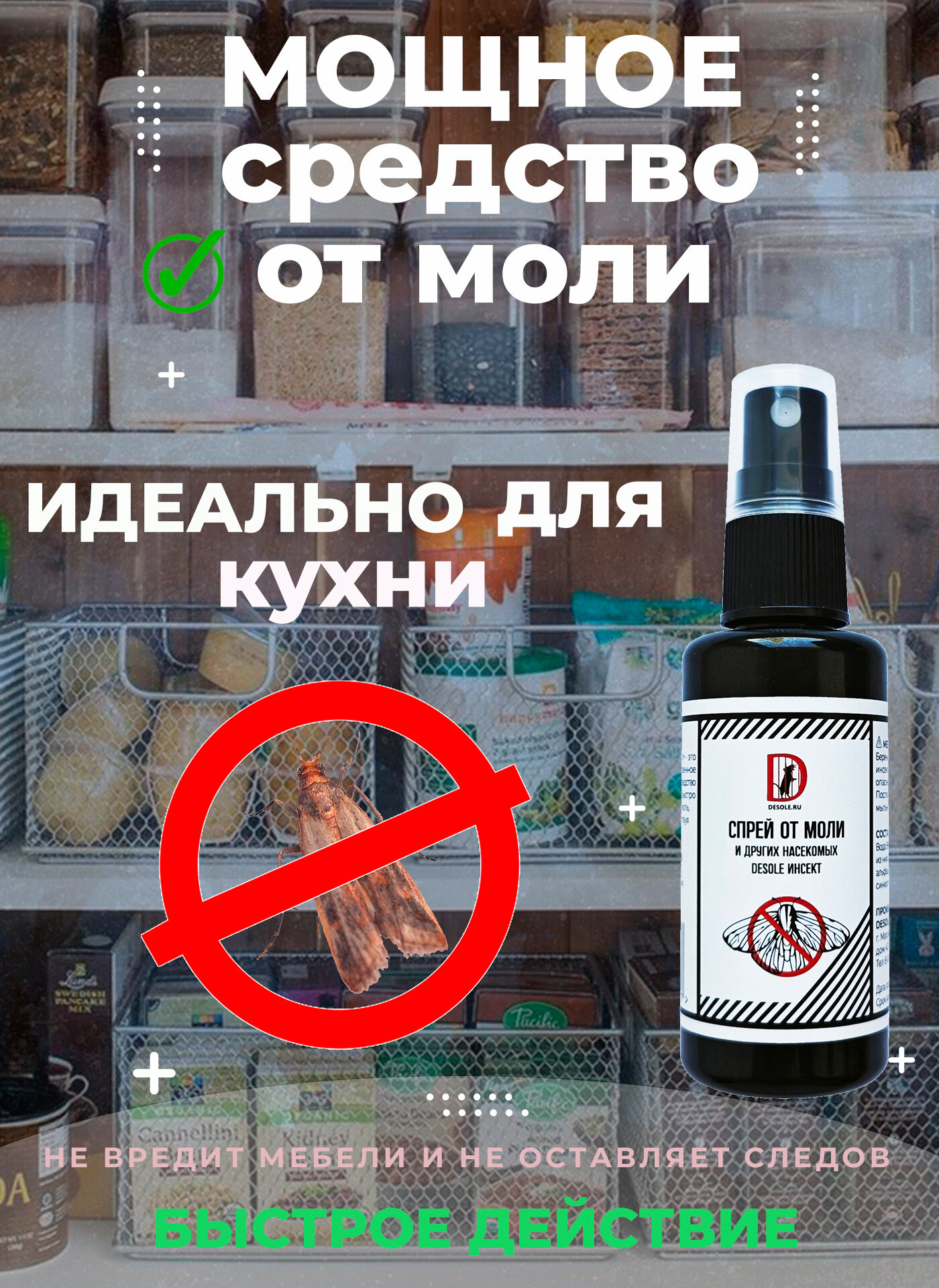 Эффективное средство для уничтожения моли, кожеедов и мокриц спрей Desole информация: