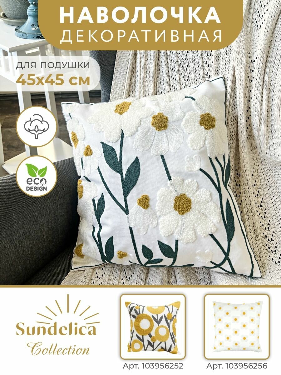 Декоративная наволочка Sundelica, размер 45x45, съемная, с вышивкой, 1 штука 844 ₽