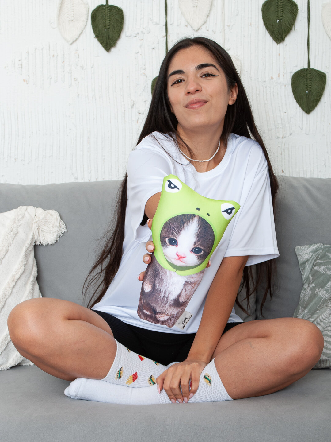 Отзывы на Мягкая антистресс мини игрушка-подушка кот мем Котенок лягушонок