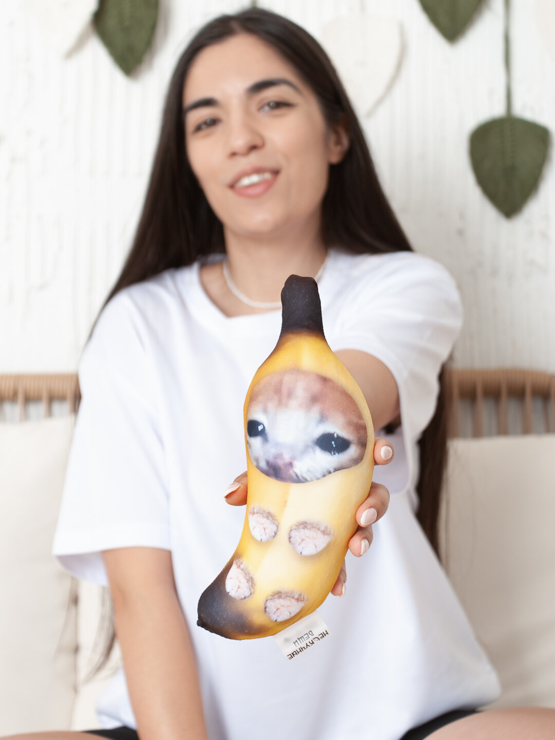 Мягкая антистресс мини игрушка-подушка мем Кот банан информация: