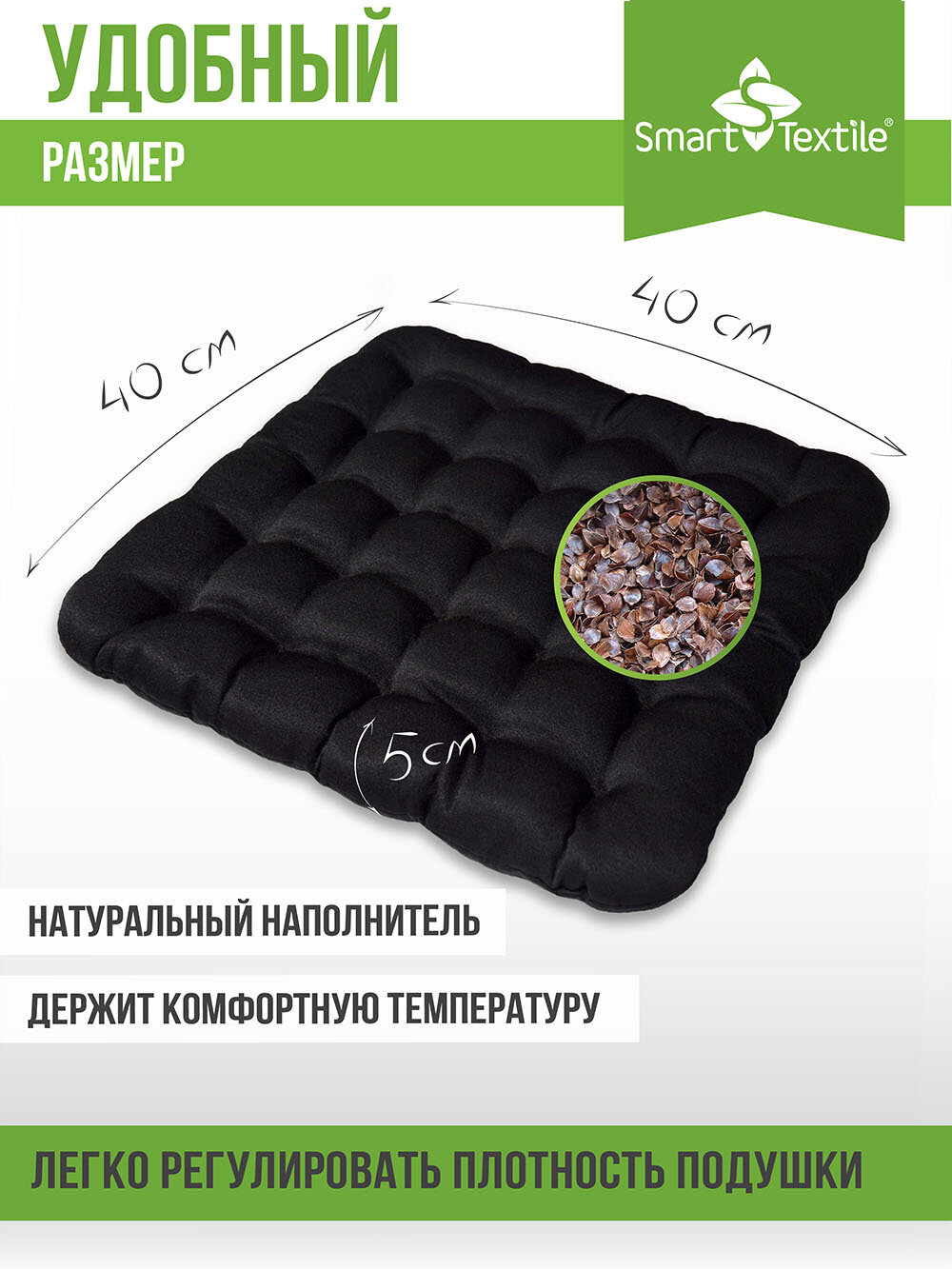 Подушка-сидушка "Уют" Smart Textile, гречневая лузга, для стула, 40 x 40 см 452 ₽