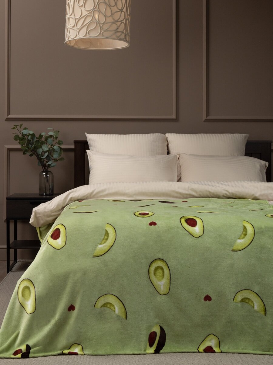 Плед TexRepublic Absolute 180х200 см, 2 спальный, велсофт, покрывало на диван, теплый, мягкий, зеленый с рисунком Авокадо информация: