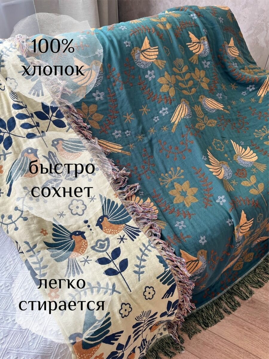 BelkaHome Плед 200х220 хлопковый накидка на диван, кровать, кресло, покрывало