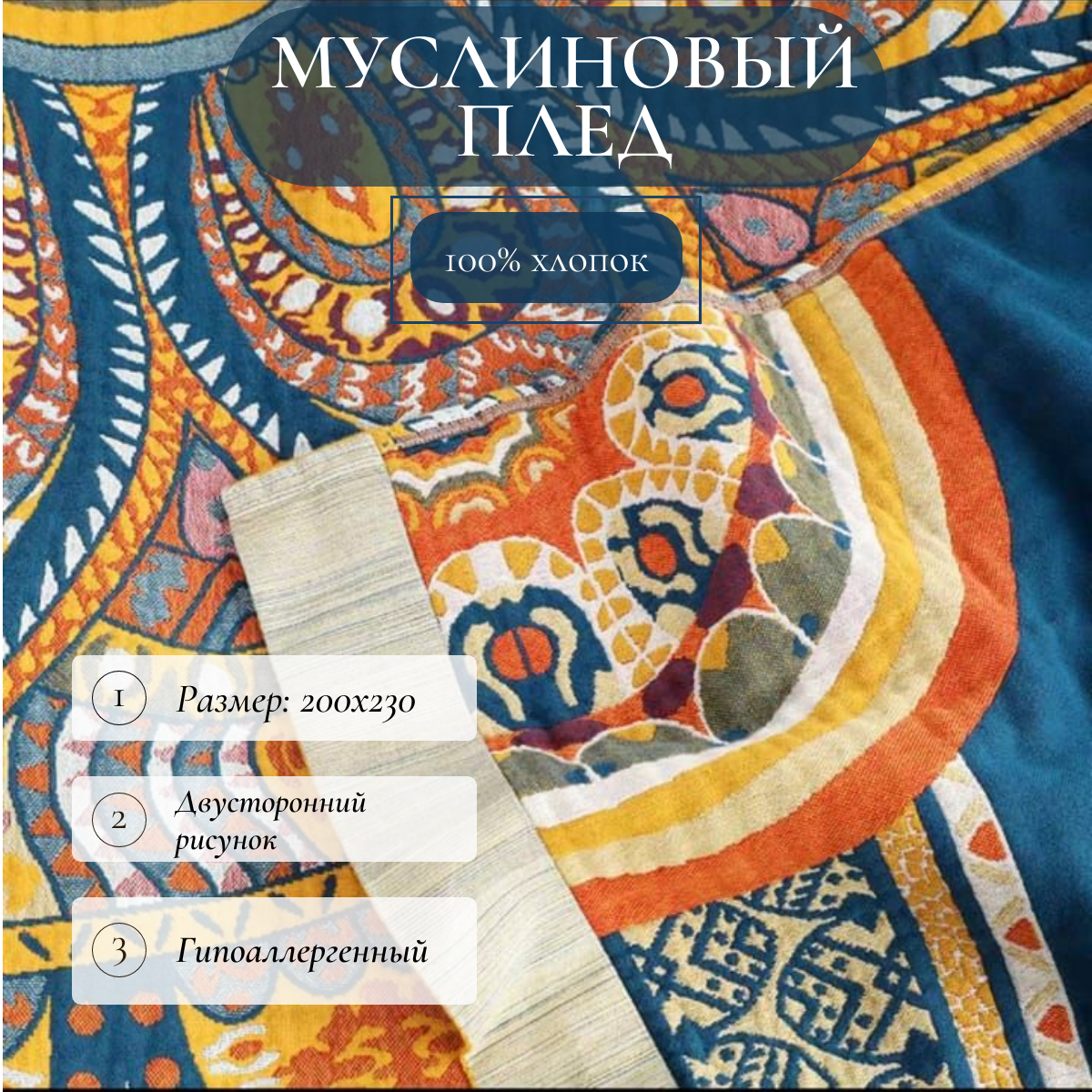 Плед муслиновый Muslin blanket 200х230см "Ранголи" информация: