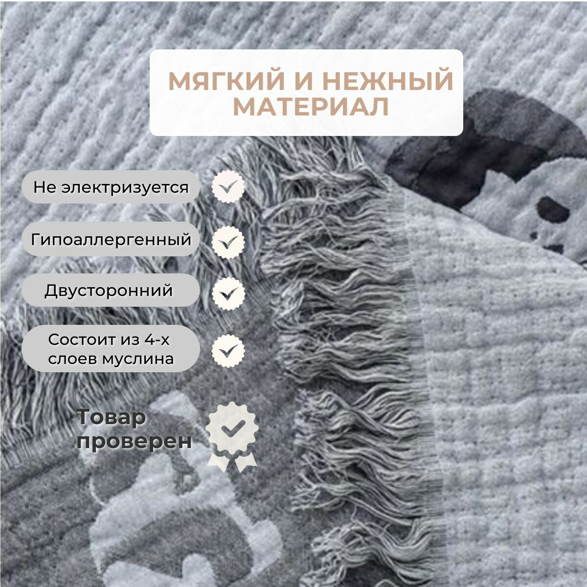 Плед муслиновый 200х230см Muslin blanket темно-серый панда информация: