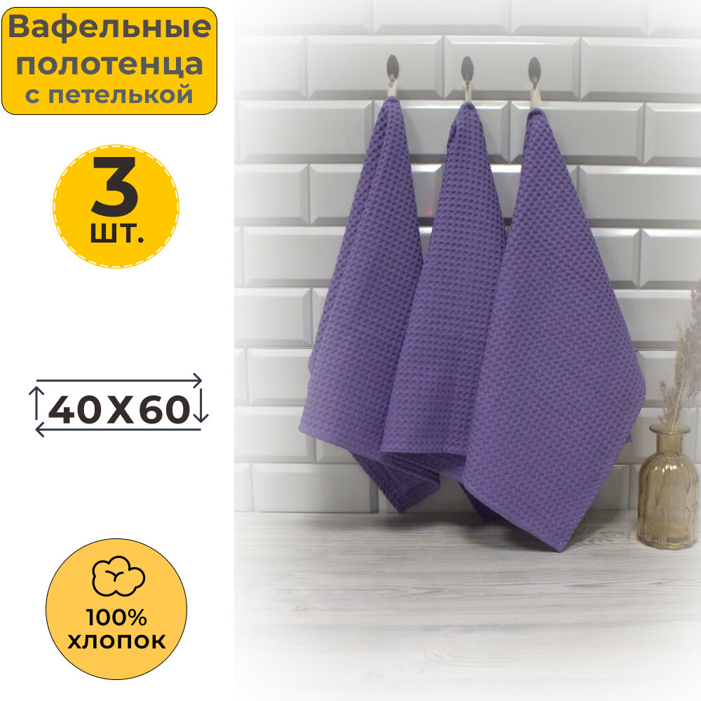 Набор из 3-х вафельных полотенец 40x60 см (3 шт.) с петелькой Вотекс Сиреневый 616 информация: