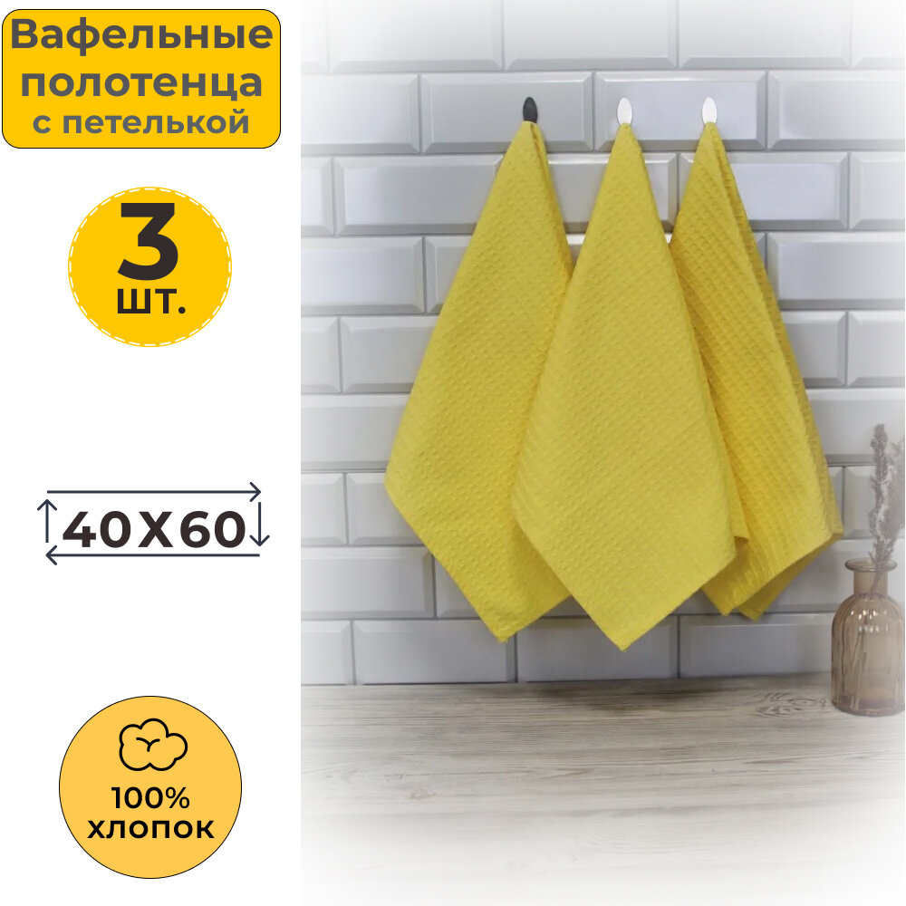 Отзывы на Полотенце кухонное вафельное набор 3 шт. 40x60 с петелькой Вотекс Желтый 257