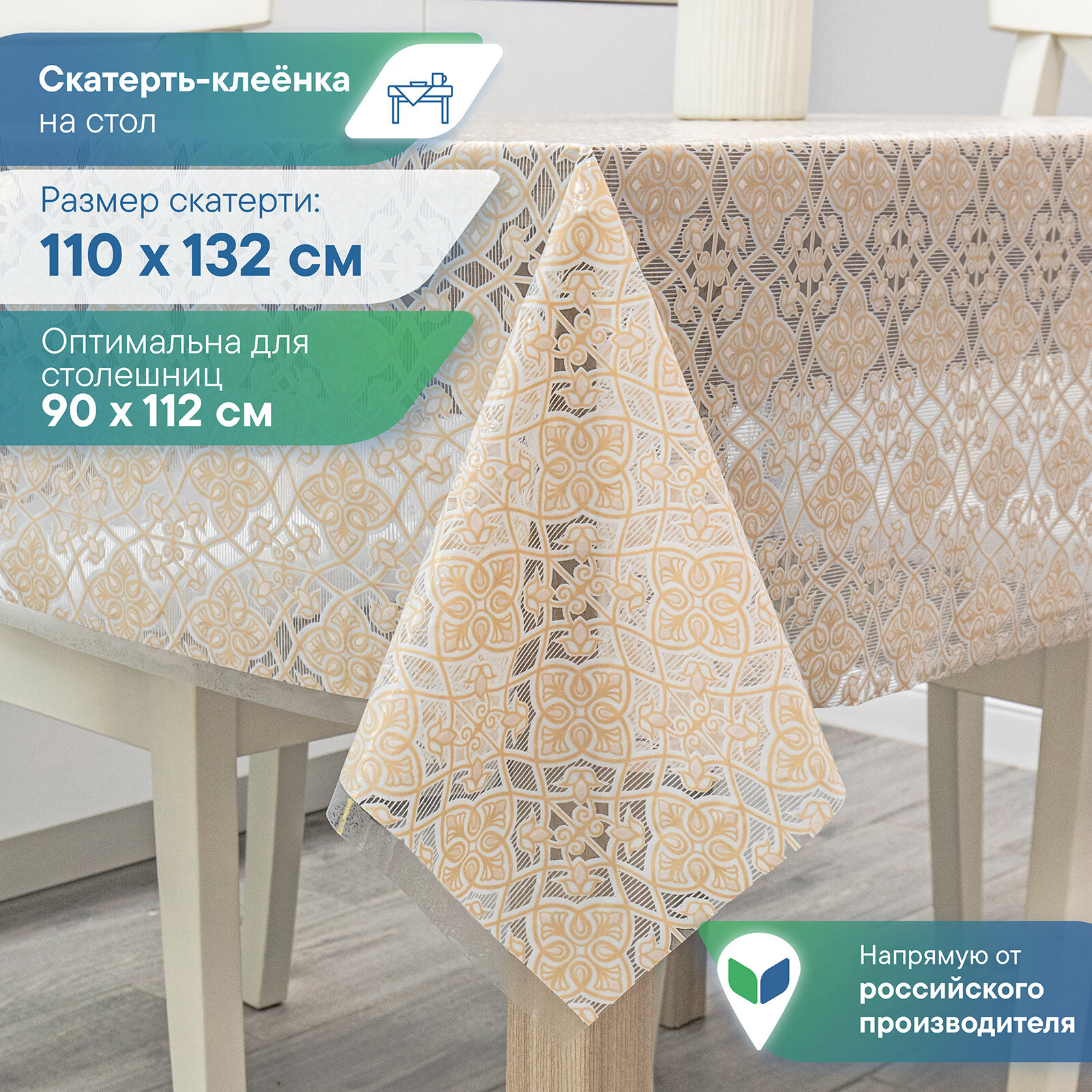 Отзывы на Скатерть клеенка столовая VILINA "Муза" прямоугольная водонепроницаемая на стол для кухни ажурная белая бежевая 110х132 см Орнамент