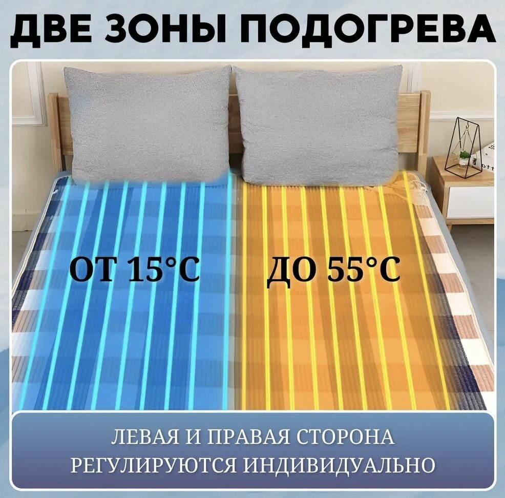 Одеяло с подогревом , электропростынь 150х180 см, электроодеяло, 9 режимов нагрева, 2 зоны оборева.