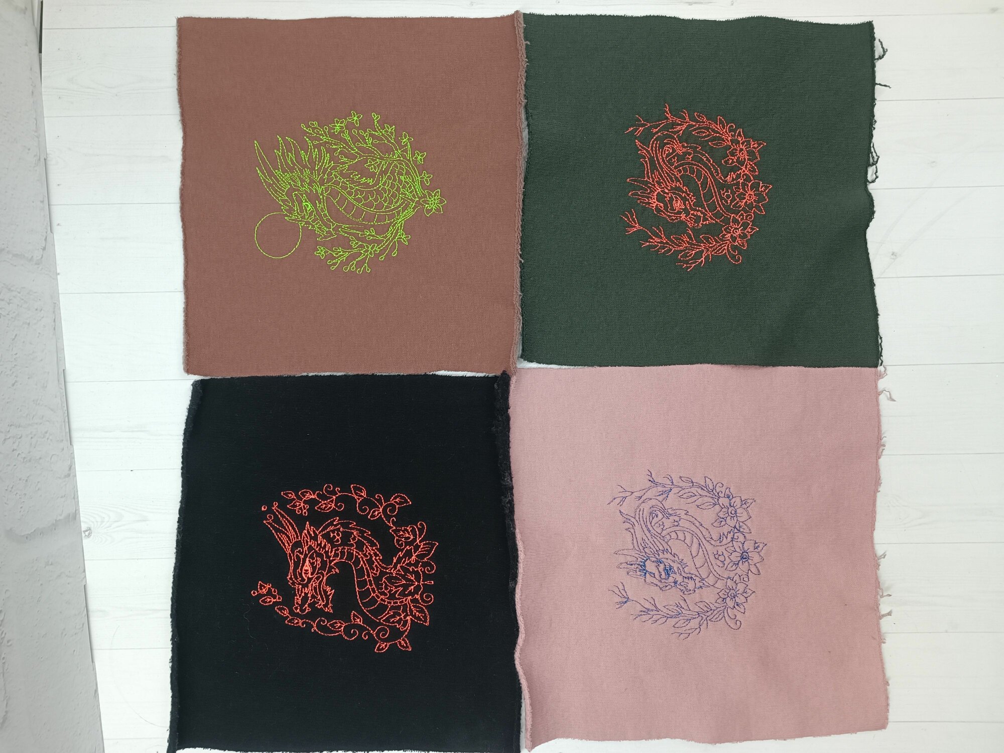 Ткань (футер с начесом) с вышивкой Дракон, 4 штуки, номер 1 информация: