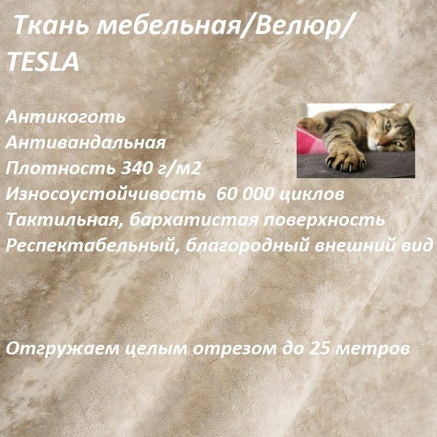 Ткань мебельная 100KOVROV антикоготь Велюр TESLA_05 карамель информация: