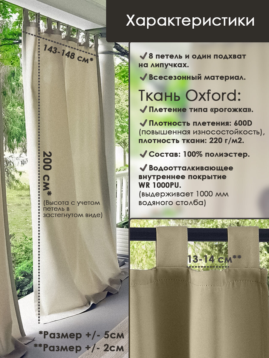 Уличная штора, 2 м-цв.бежевый информация: