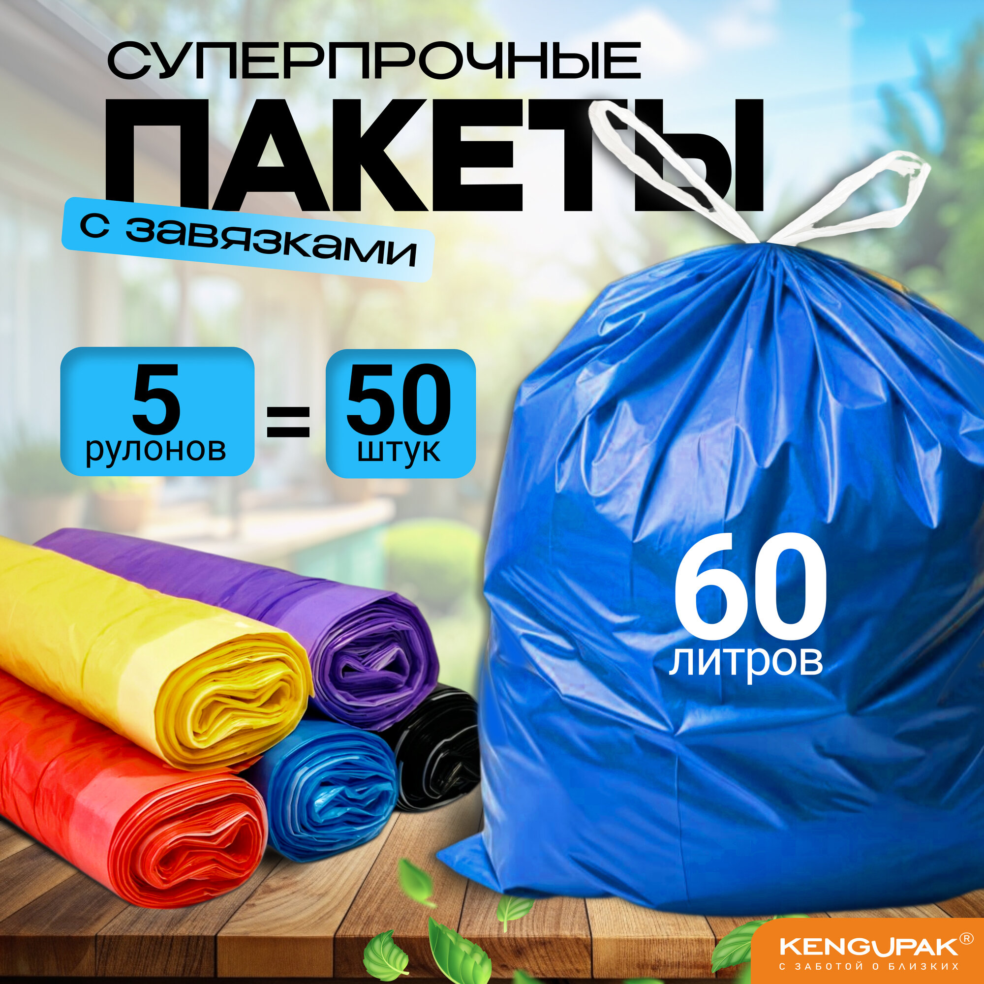 Набор суперпрочных мешков для мусора с завязками 60л, 50шт информация: