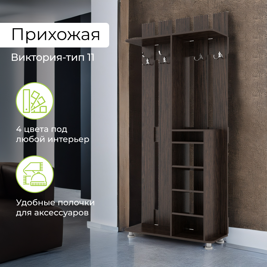 10 цен на Прихожая Виктория 11, Венге, обувница для прихожей, вешалки для одежды, вешалка настенная