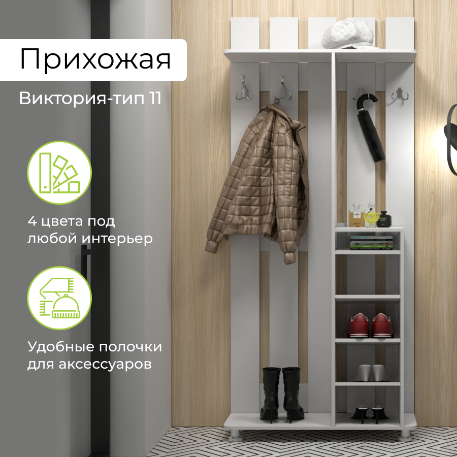 10 цен на Прихожая BONMEBEL Виктория 11, Белый, обувница для прихожей, вешалки для одежды, вешалка настенная