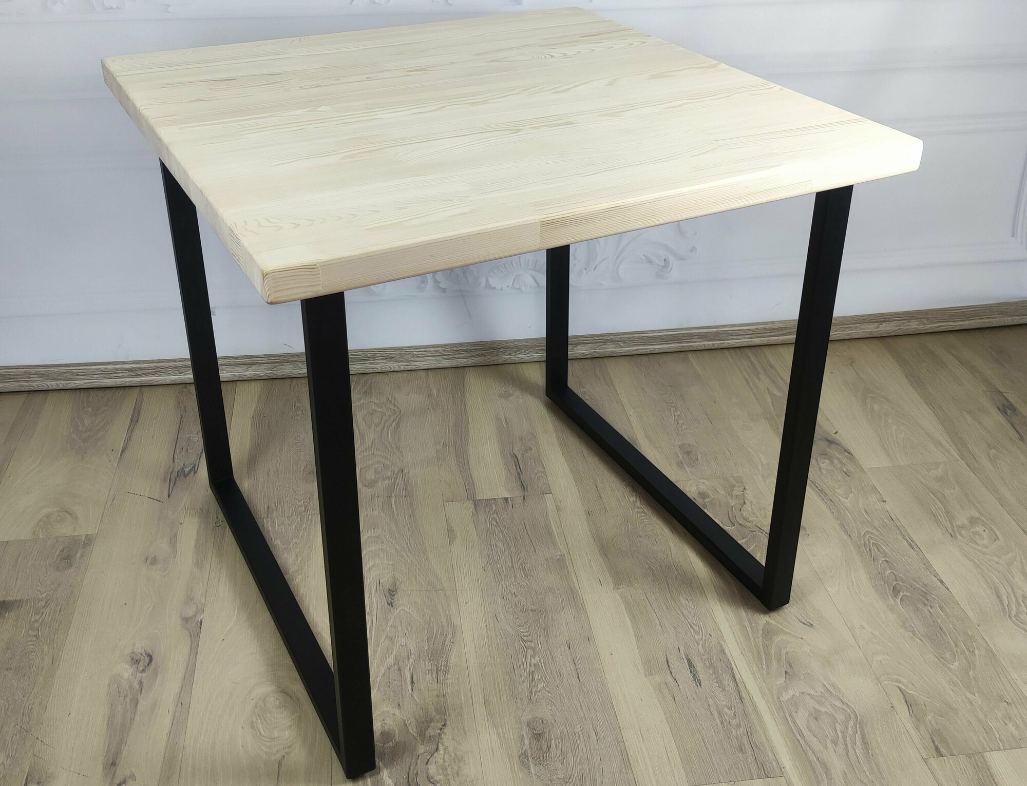 Стол кухонный Loft с квадратной столешницей из массива сосны 40 мм без шлифовки и покраски и черными металлическими ножками, 75x75х75 см информация: