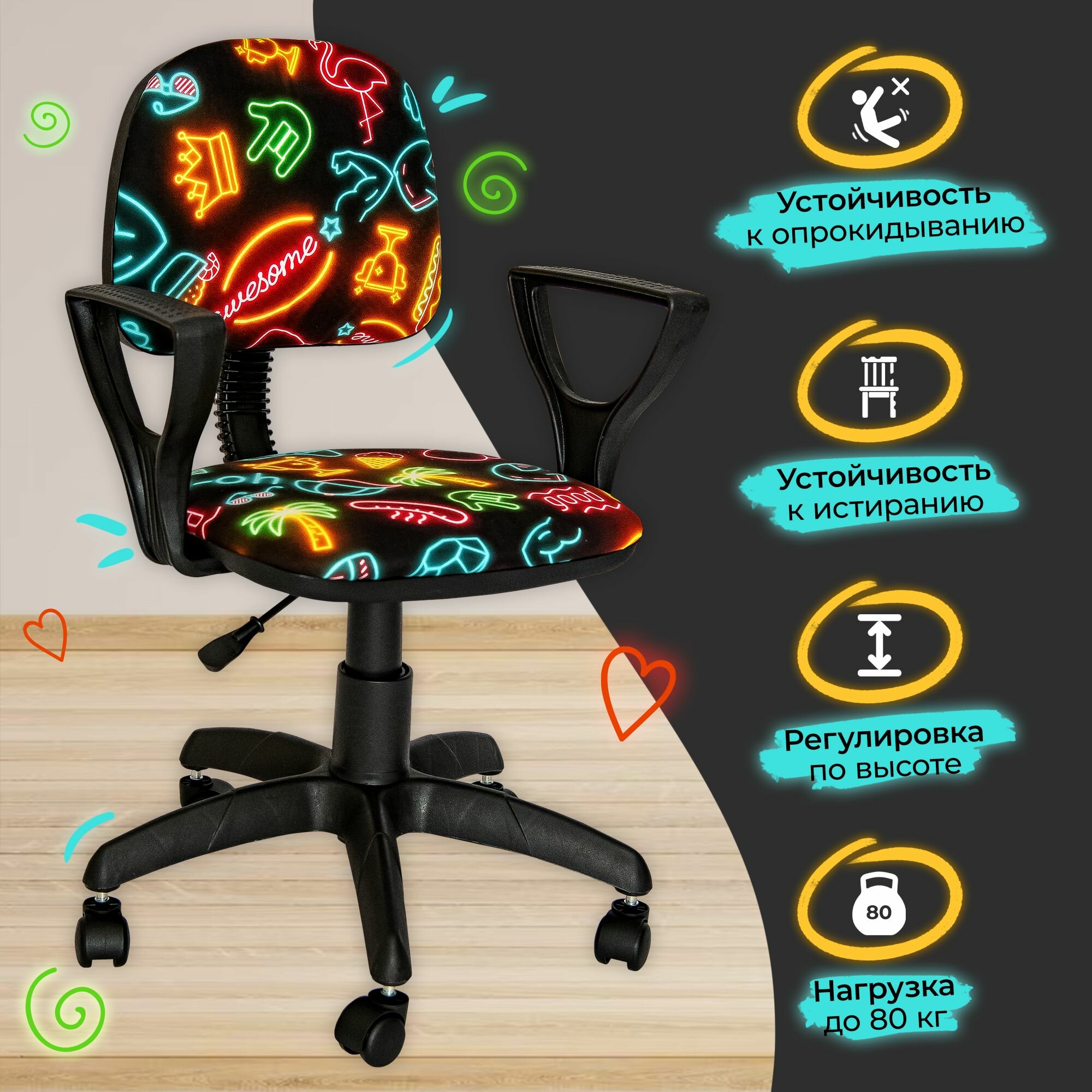 Компьютерное кресло детское, для школьника, в детскую, Неон информация: