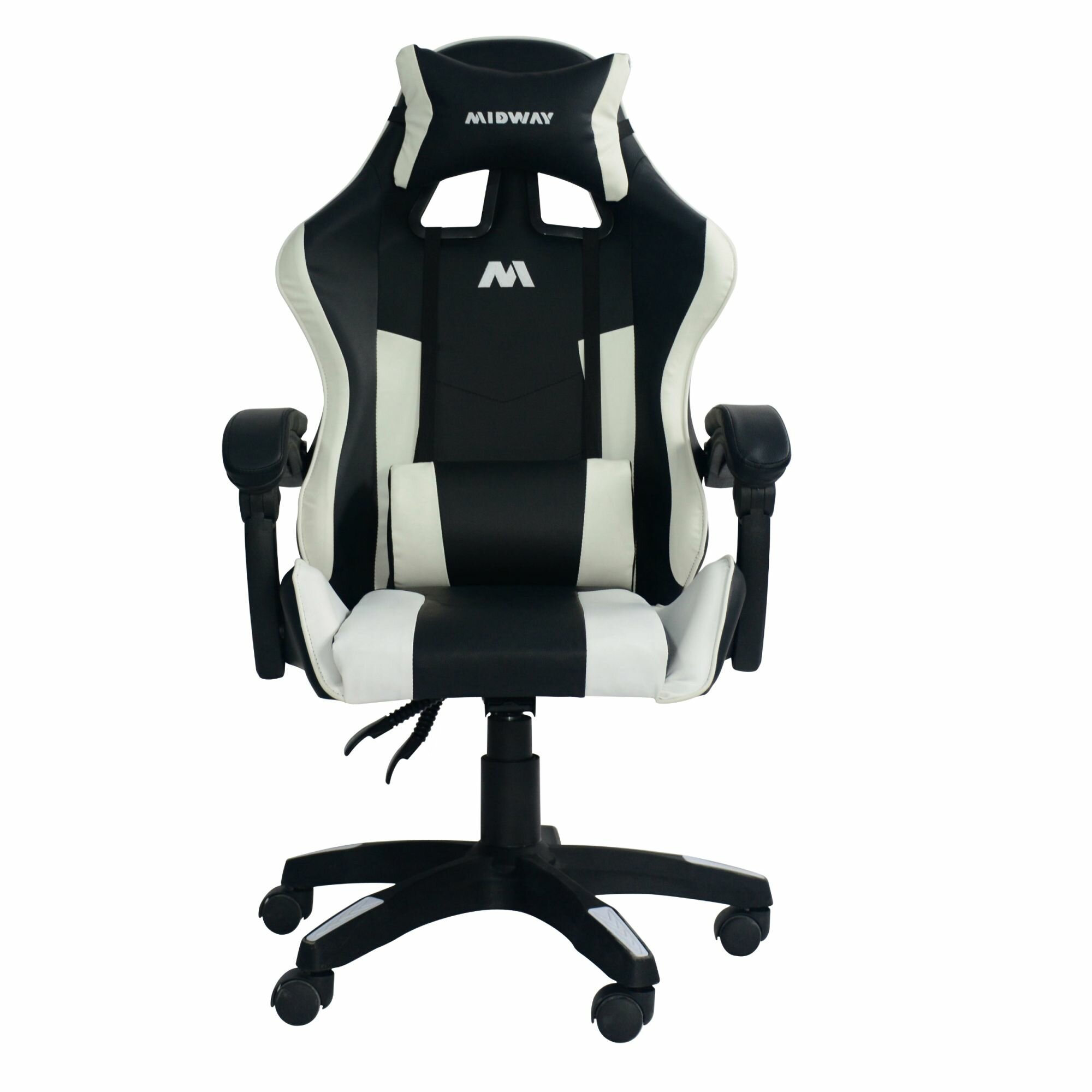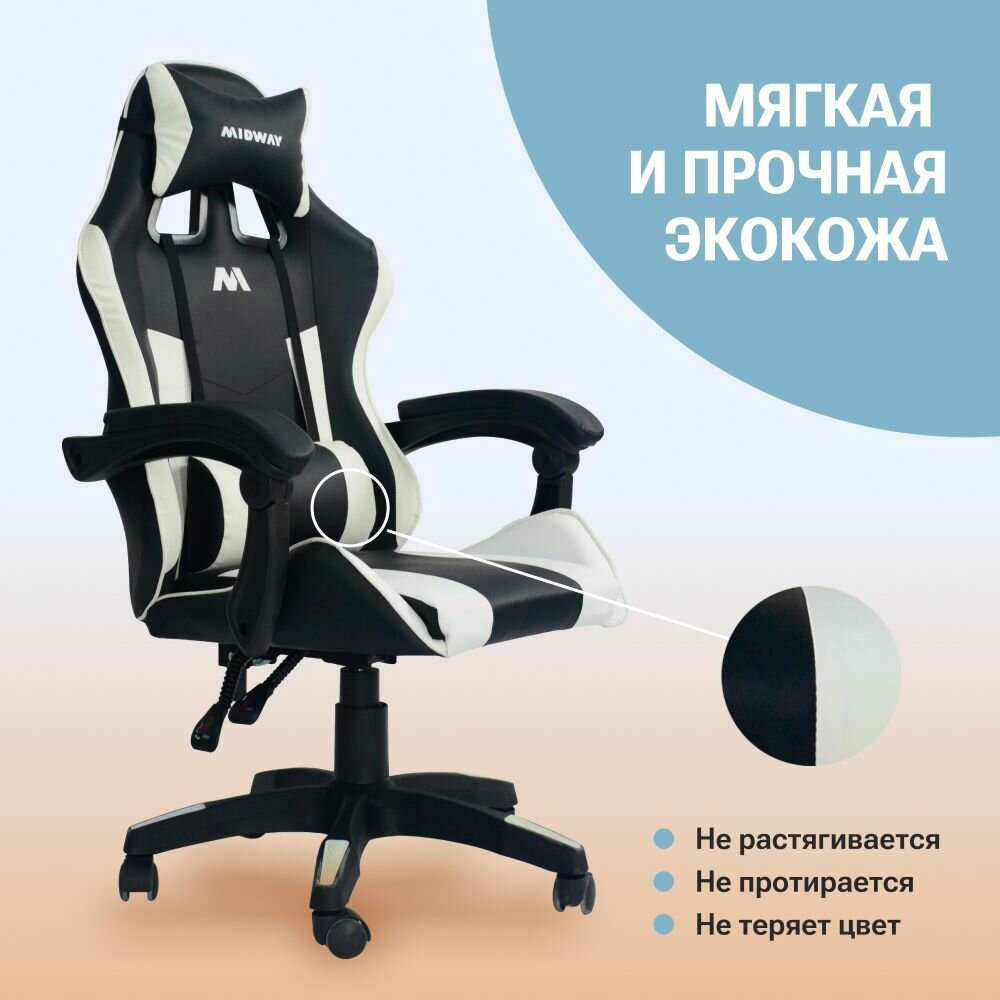 Компьютерное игровое кресло на колёсиках MIDWAY Axe, белый (эргономичное, с обивкой из экокожи) информация: