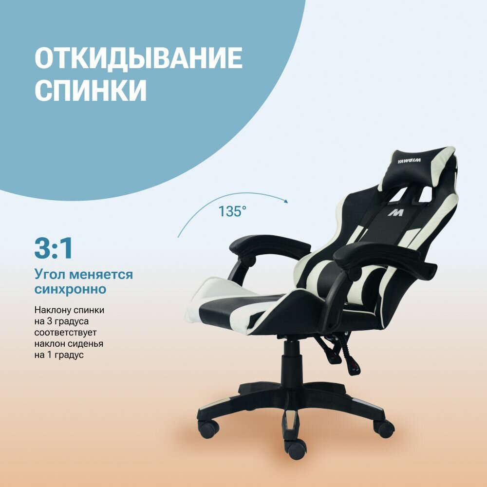 10 цен на Компьютерное игровое кресло на колёсиках MIDWAY Axe, белый (эргономичное, с обивкой из экокожи)