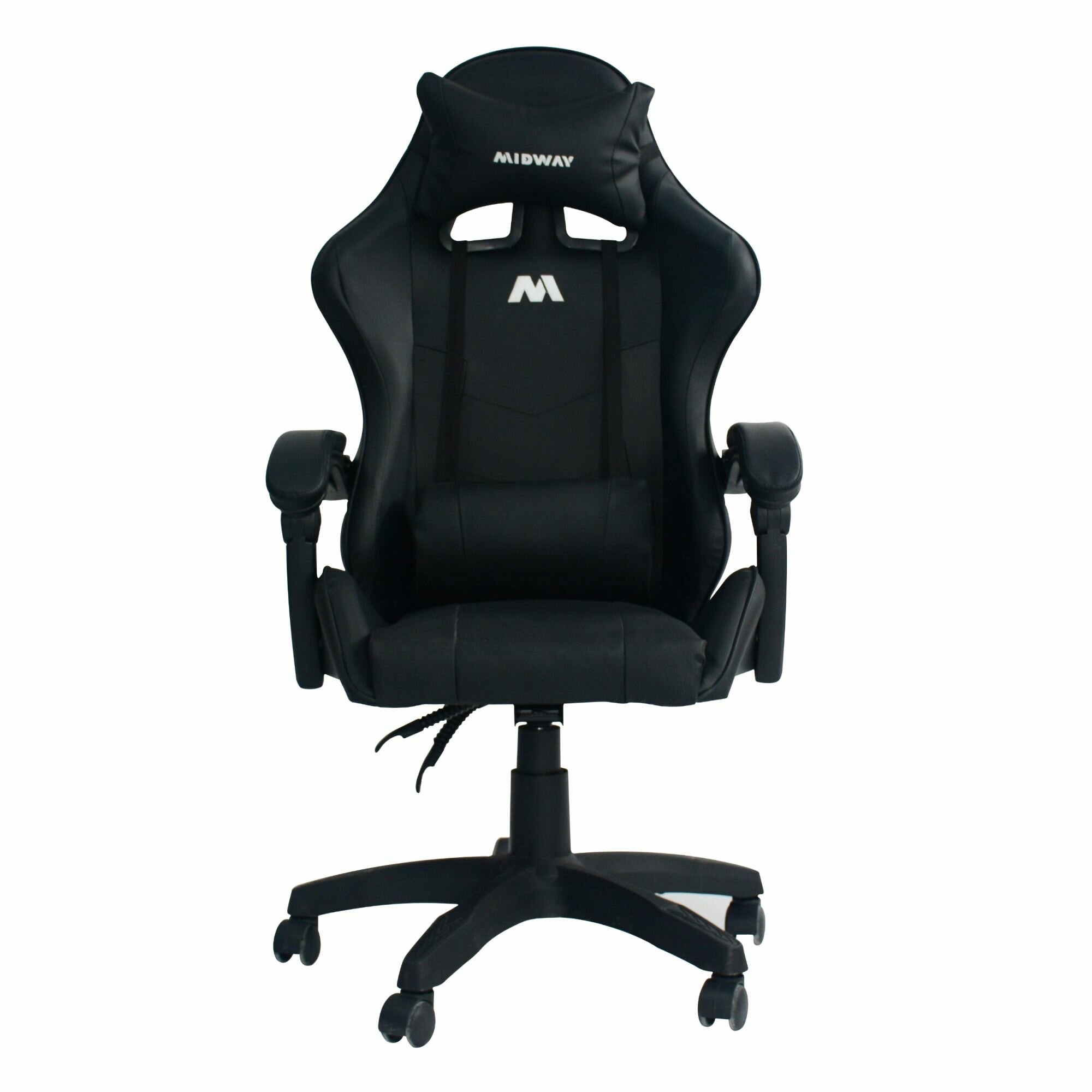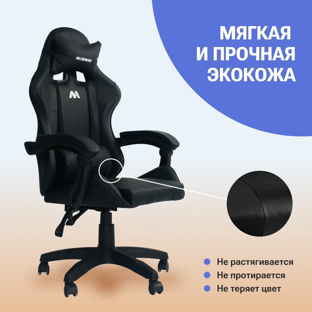 Компьютерное игровое кресло на колёсиках MIDWAY Axe, чёрное (эргономичное, с обивкой из экокожи) информация:
