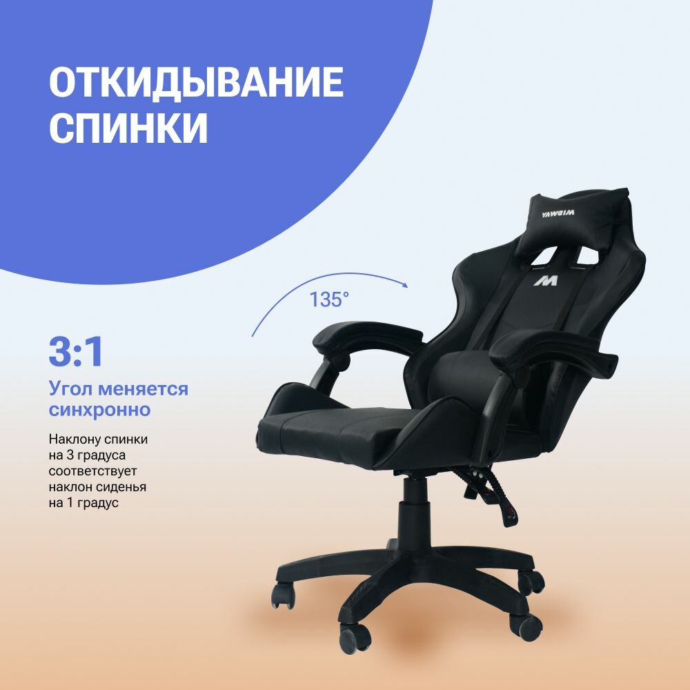 10 цен на Компьютерное игровое кресло на колёсиках MIDWAY Axe, чёрное (эргономичное, с обивкой из экокожи)