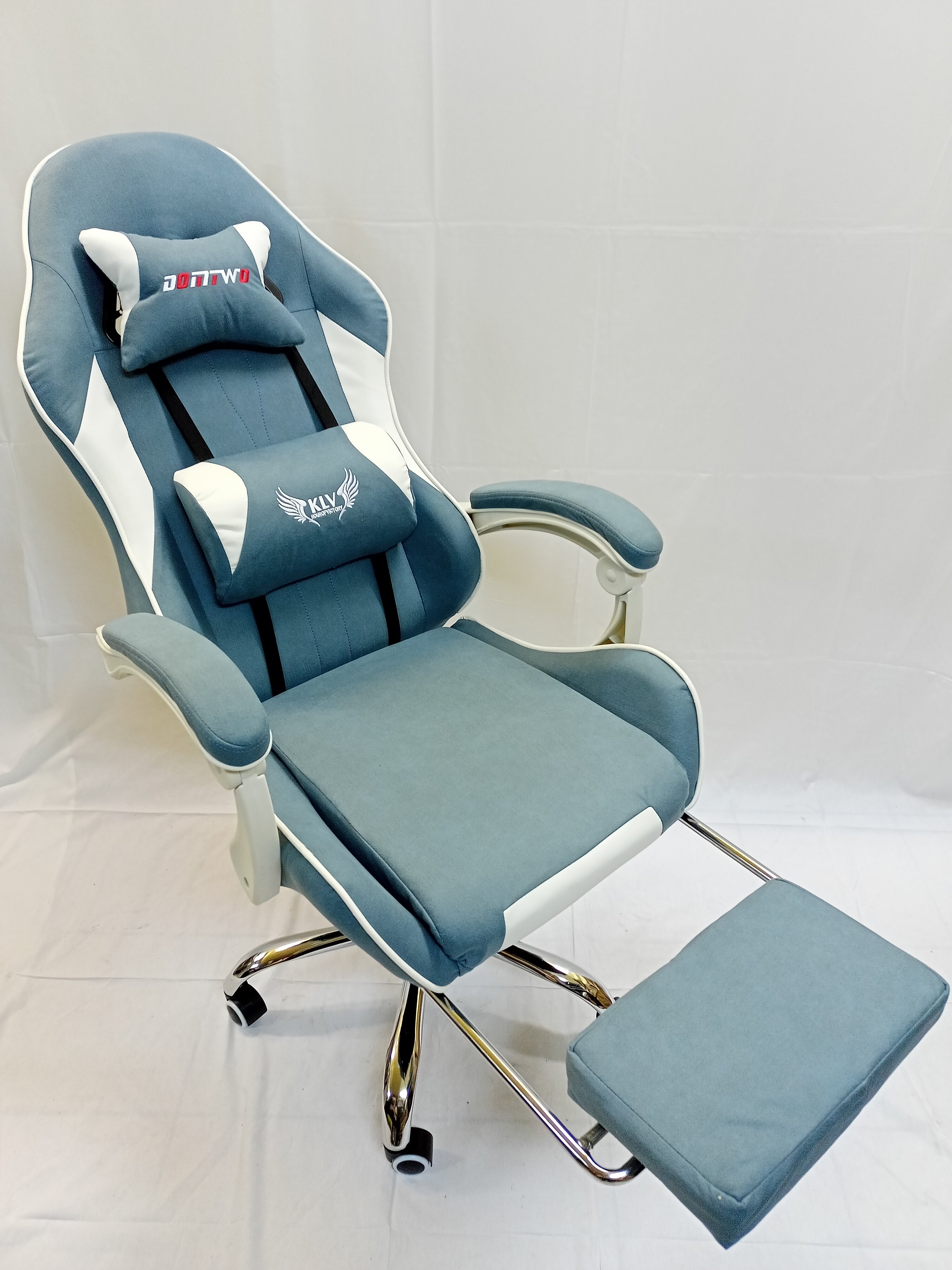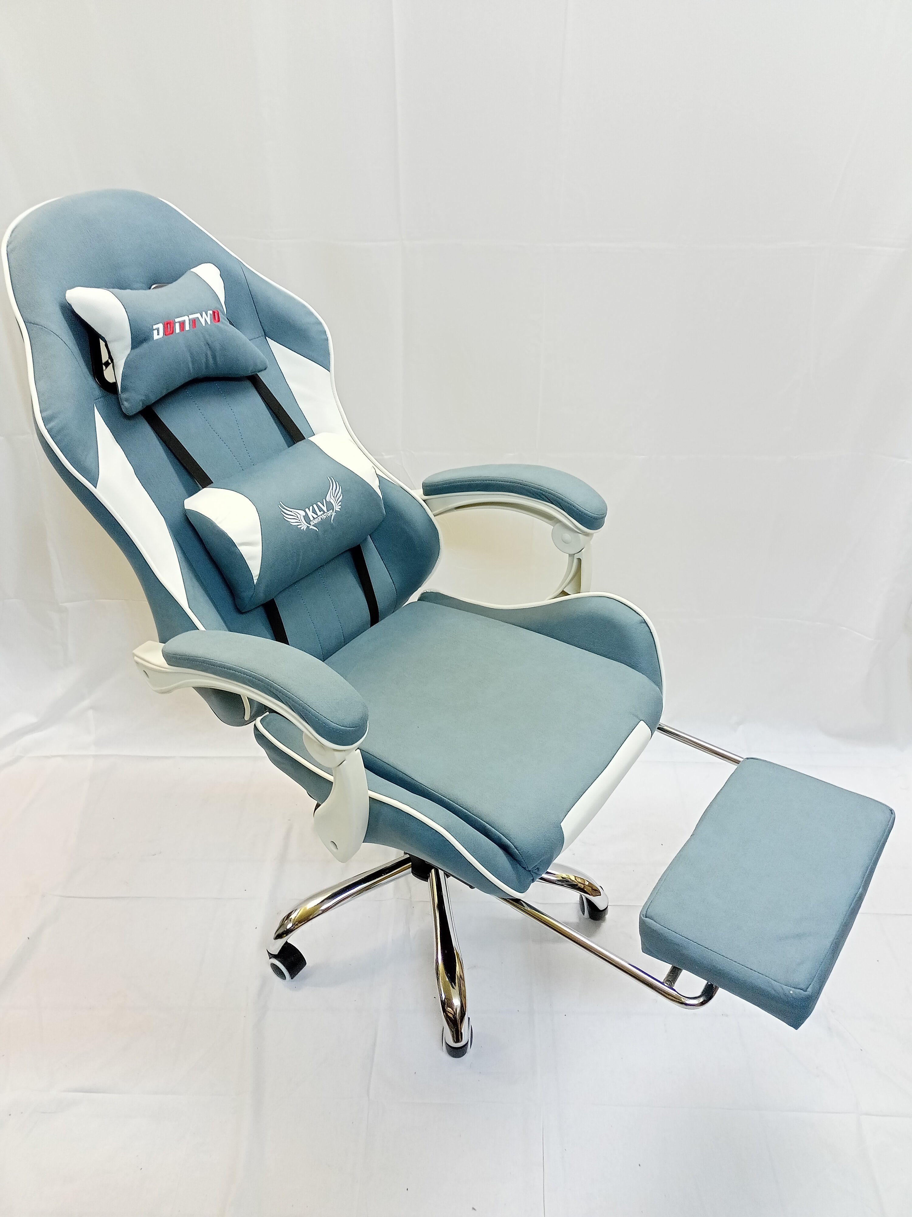 Отзывы на Игровое компьютерное кресло. Синяя ткань, белый кожзам, подножка. Кресло руководителя. Двойной поролон. Модель 308
