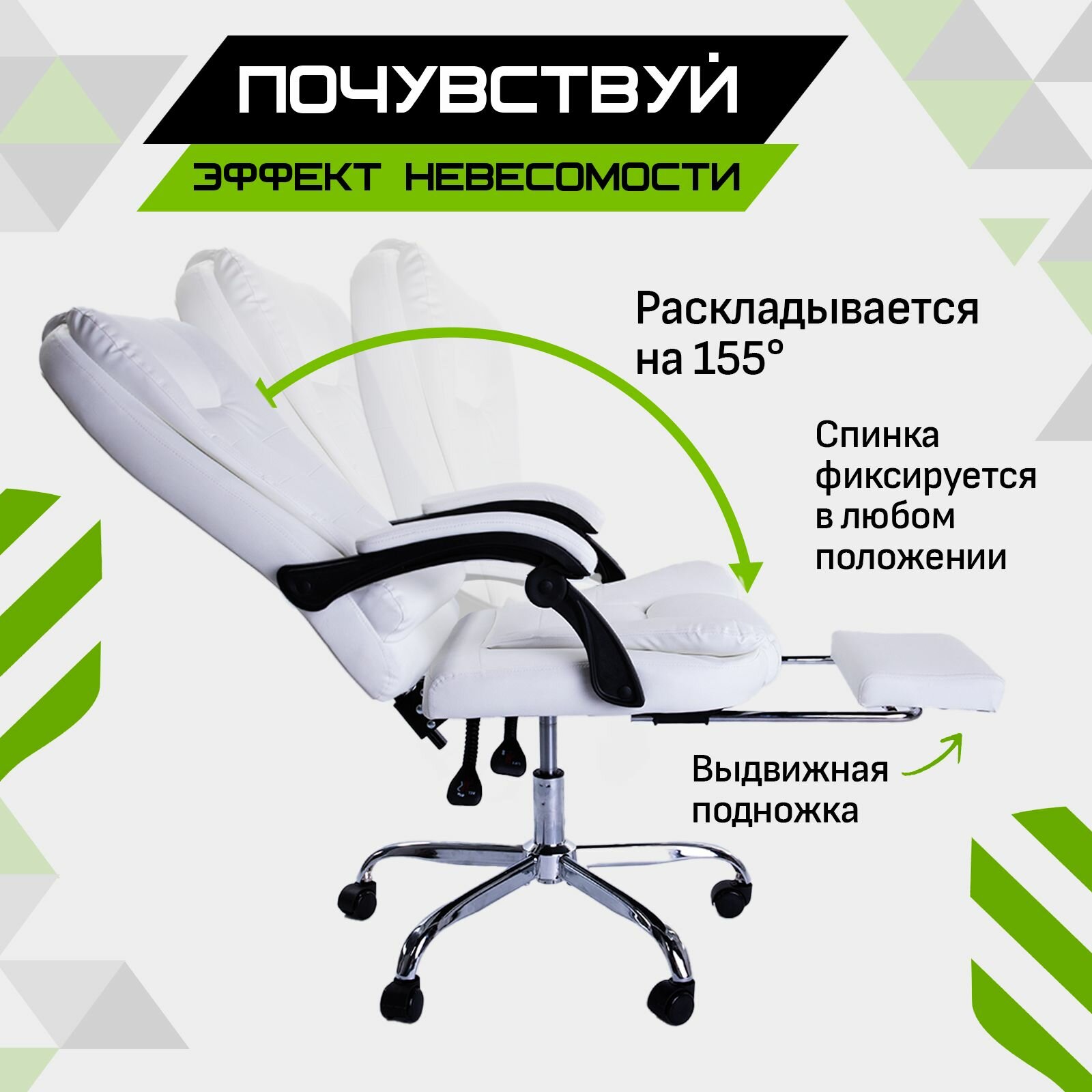 10 цен на Кресло компьютерное для дома и офиса белое кожа FRANDER с вибромассажем