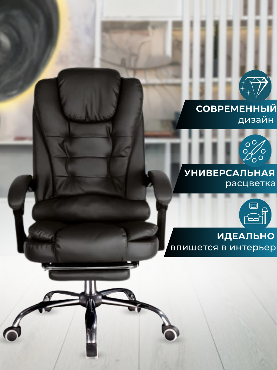 10 цен на Компьютерное, офисное кресло с подставкой для ног и вибромассажем, экокожа (черное)