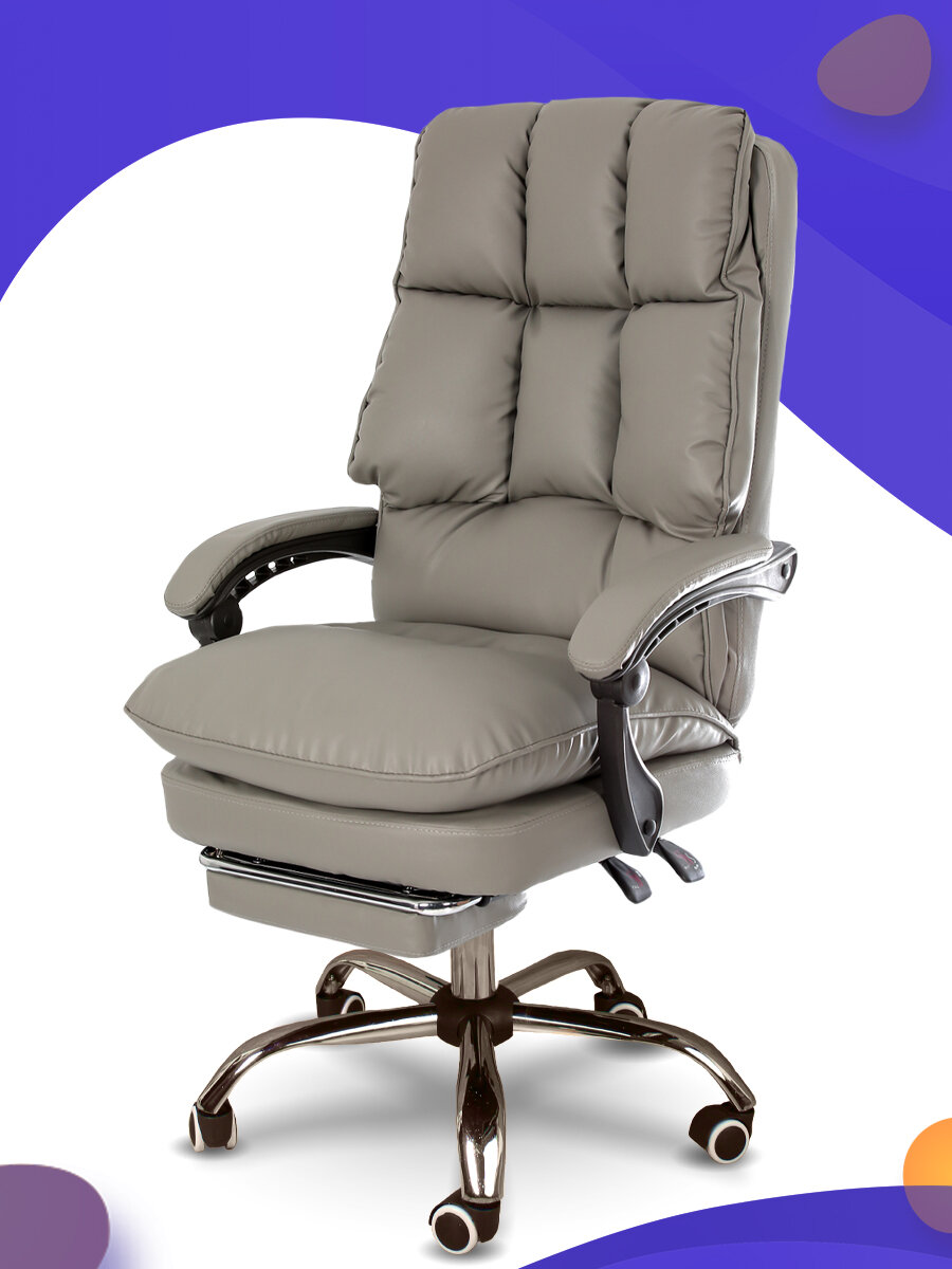 "Кресло для дома и работы" - мягкое компьютерное кресло с подставкой под ноги из экокожи, цвет серый информация: