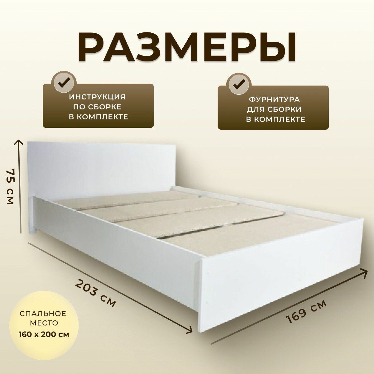 Кровать Пространство Уюта Амелина, 200х160, ЛДСП, цвет белый, без матраса информация: