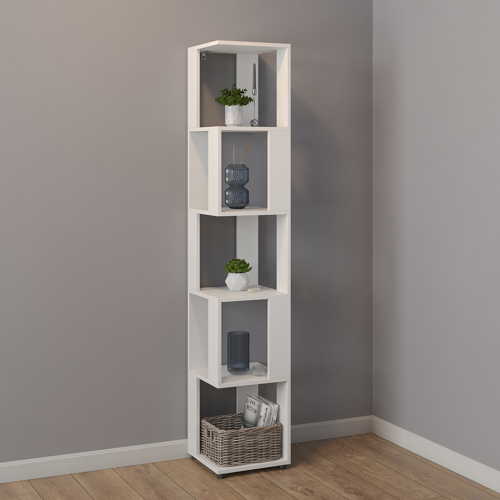 10 цен на Стеллаж угловой Jazz Plus Белое тиснение 1780х350х350