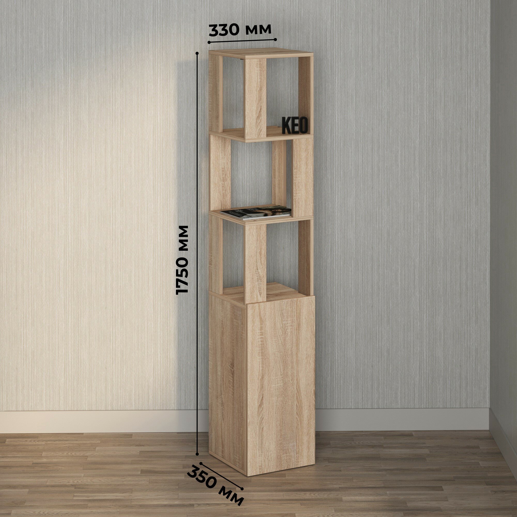 10 цен на Стеллаж напольный Кео СТЖ-267 сонома высокий узкий с дверцей для книг в гостиную ванную прихожую на балкон 1750х350х330 мм