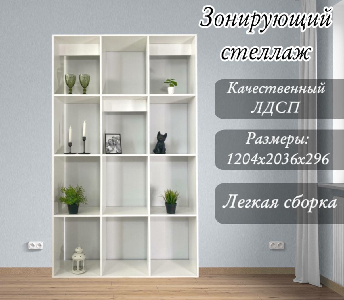 Отзывы на Стеллаж-перегородка для зонирования Kantry 2, 12 полок, 203,6х120,4х29,6 см, цвет белый