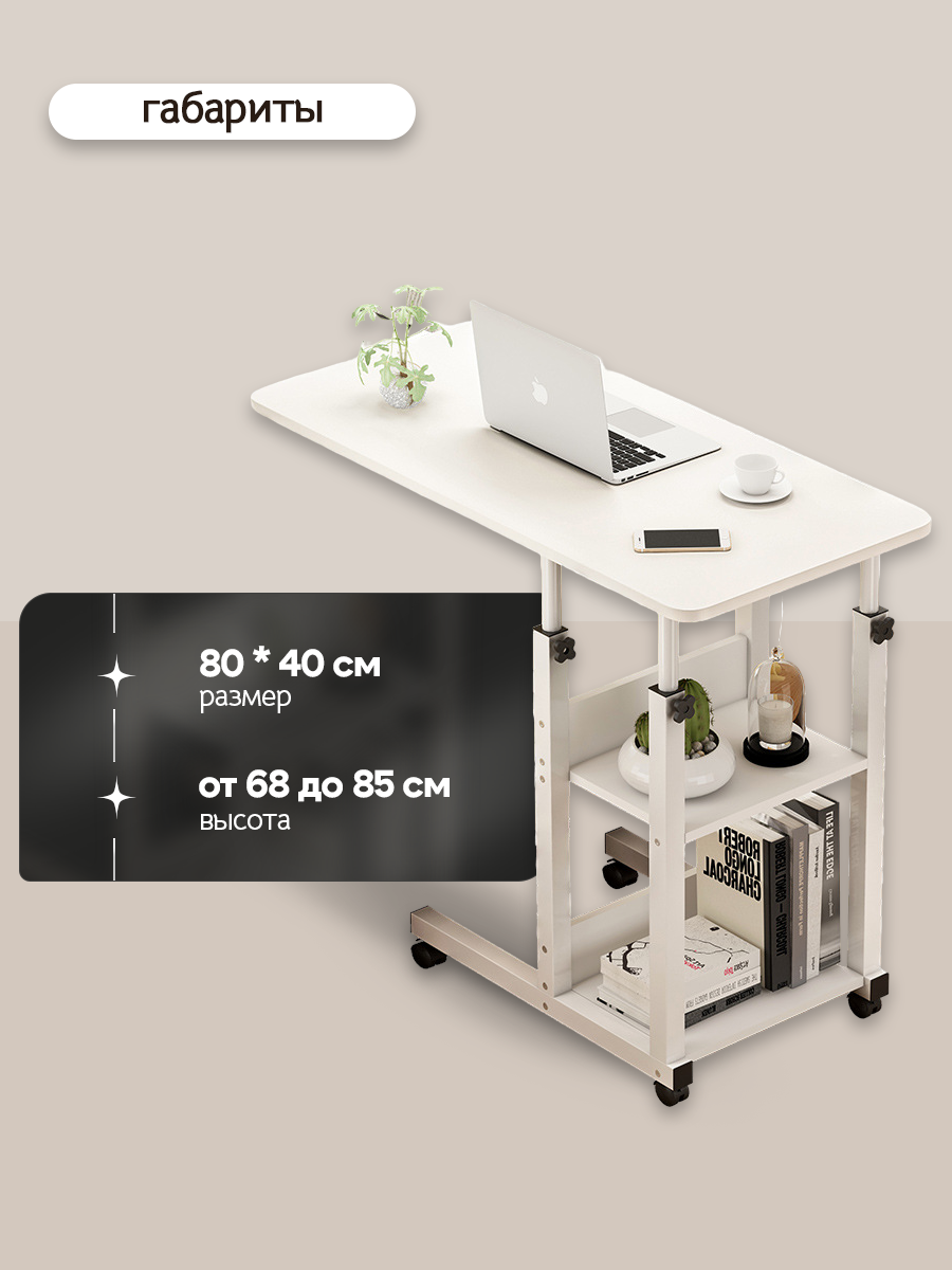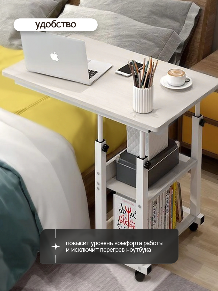 Стол трансформер для ноутбука Oqqi, прикроватный, на колесиках, белый, 60х40х69-85 см информация: