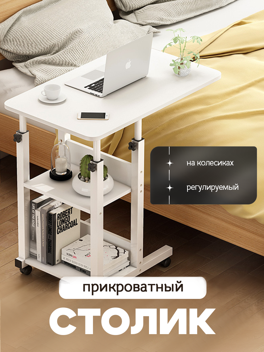 Отзывы на Стол трансформер для ноутбука Oqqi, прикроватный, на колесиках, белый, 60х40х69-85 см