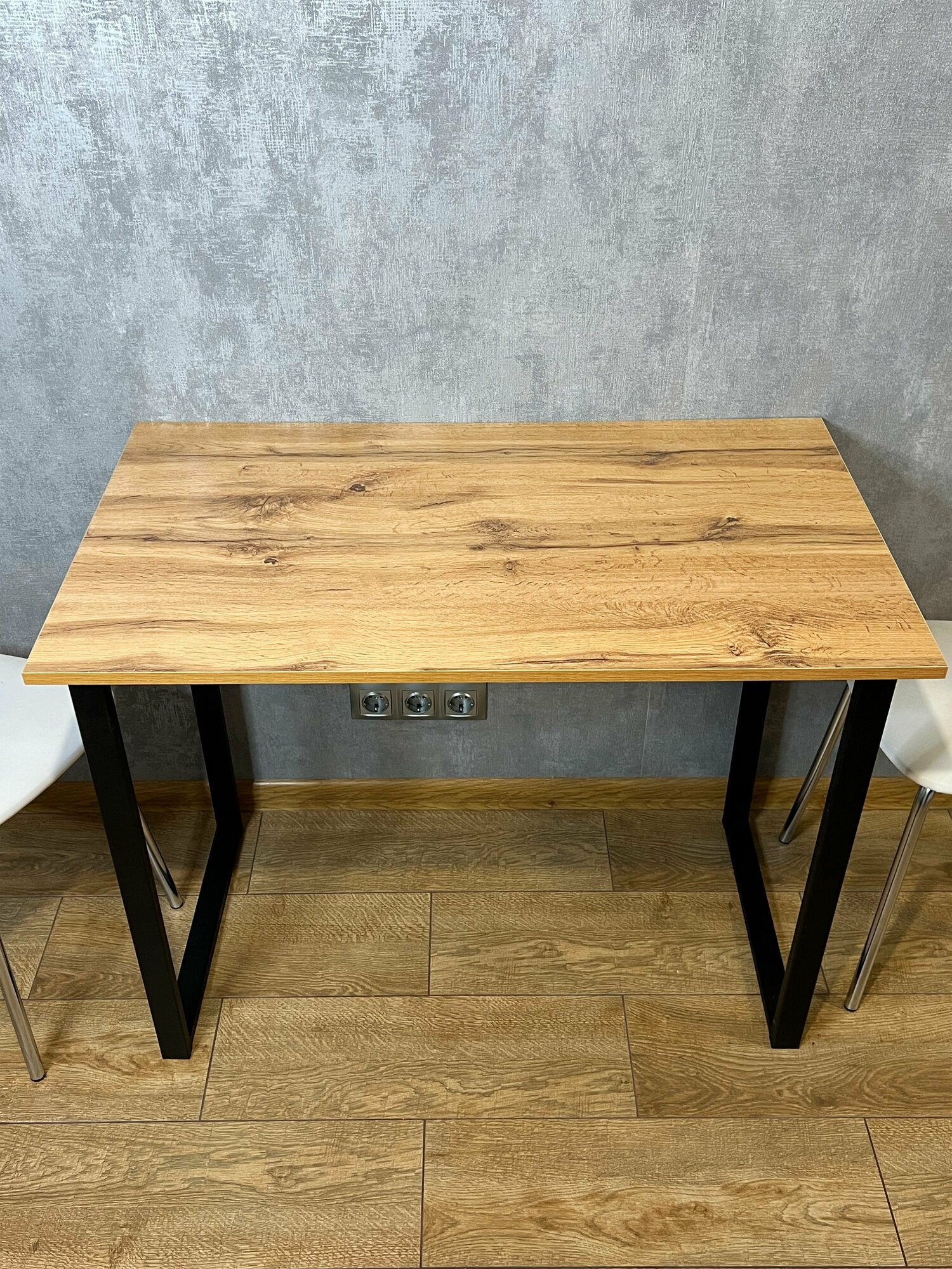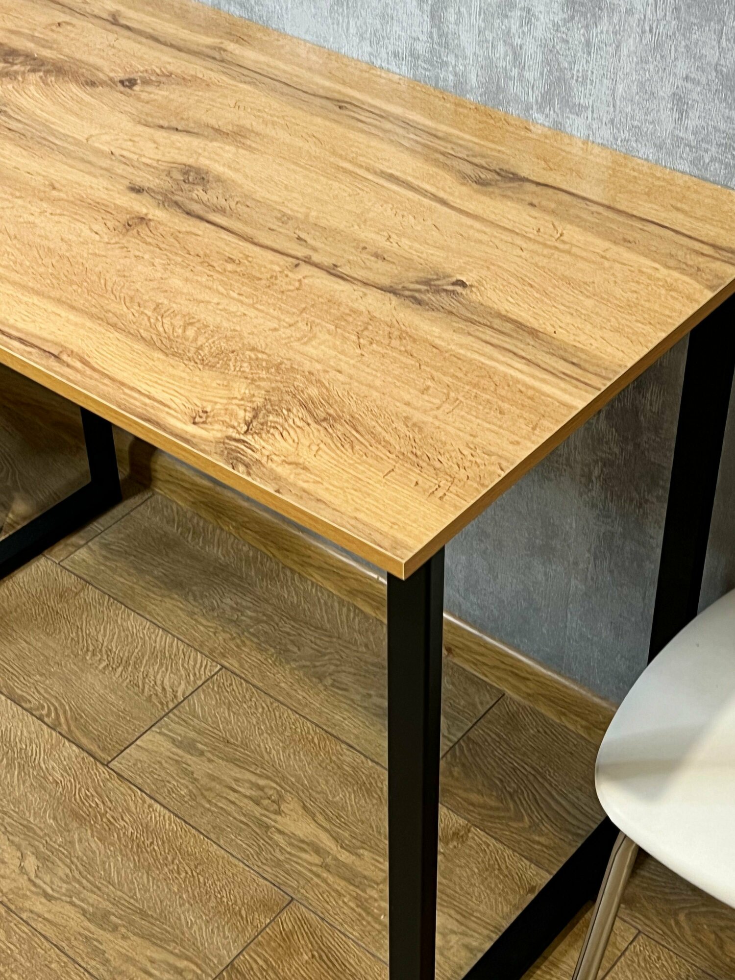 Стол кухонный Loft со столешницей из массива сосны 40 мм без шлифовки и покрытия, с черными металлическими Z-образными ножками, 140х80х75 см