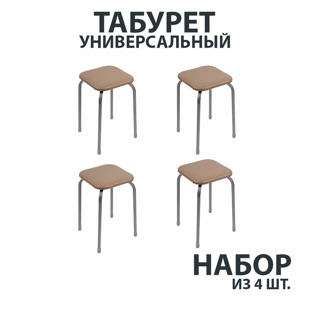 Комплект табуретов для кухни, набор 4 шт, цвет бежевый, квадратное сидение