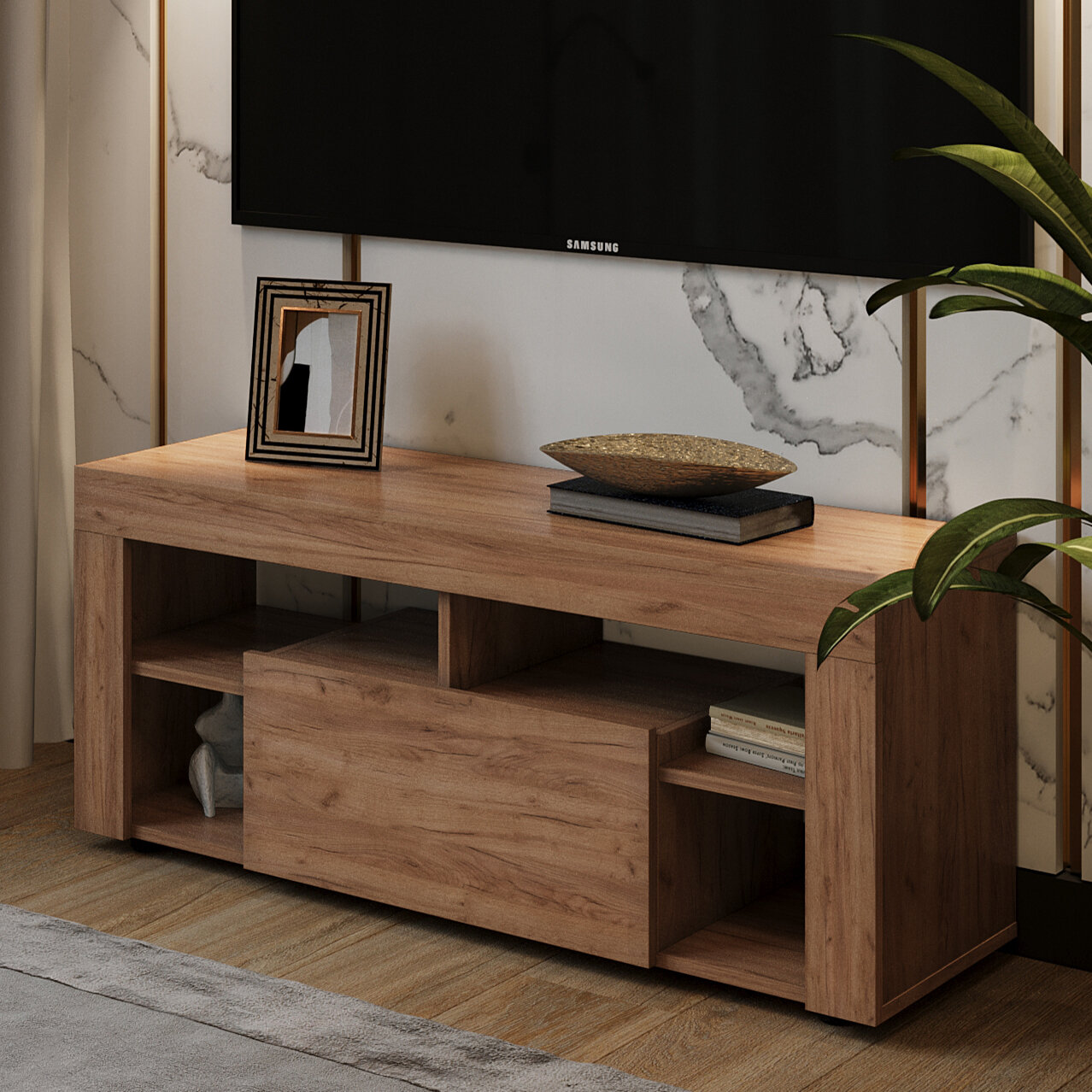 10 цен на Тумба под телевизор Лофт Плюс Дуб крафт золотой 1090х477х350