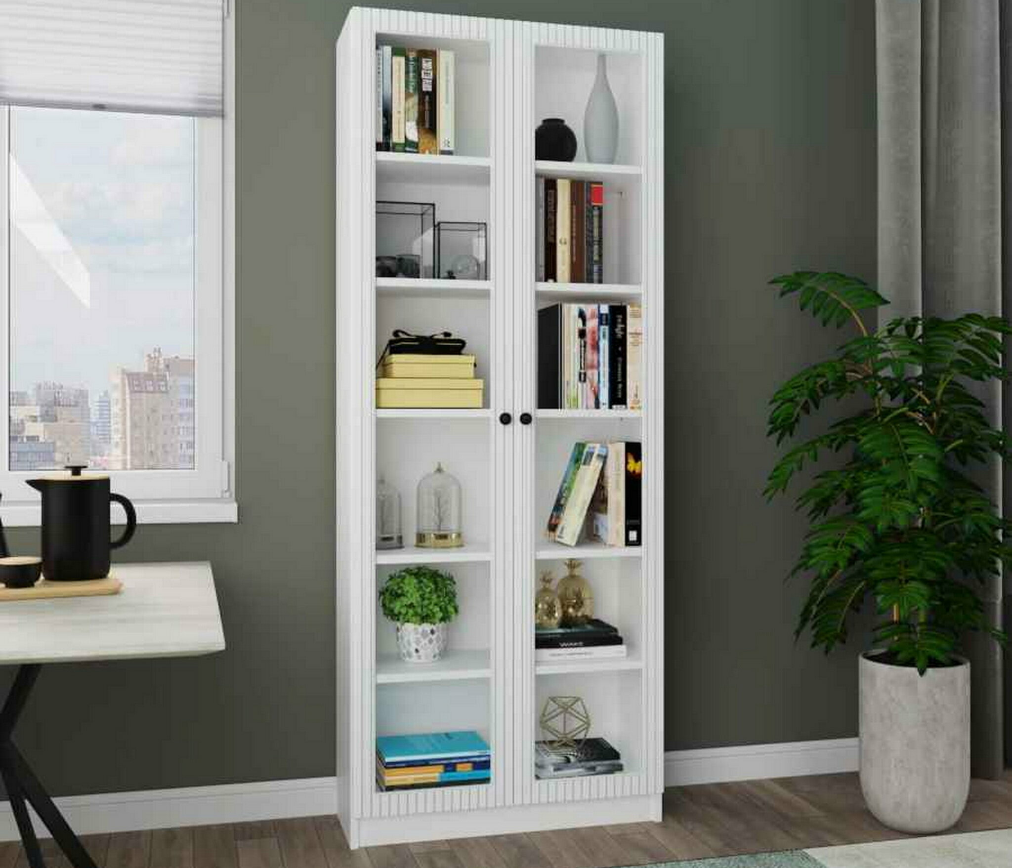 Шкаф стеллаж Билли Billy по мотивам Икеа 20, 80х30х202 см, Белый ЛДСП/рамка МДФ/стекло 15 390 ₽