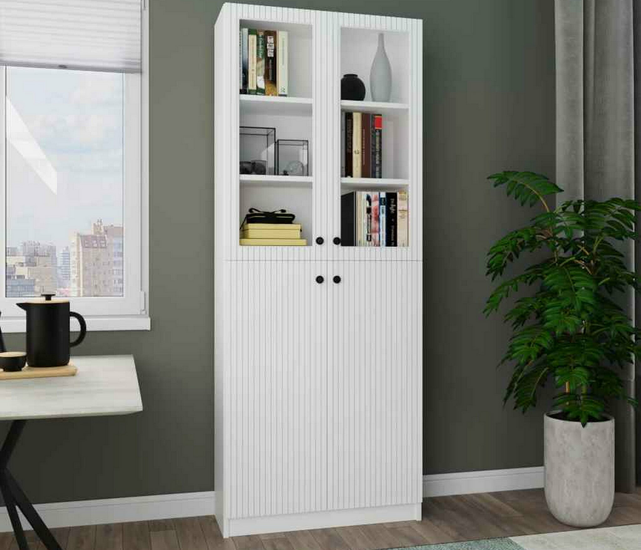 Шкаф стеллаж Билли Billy по мотивам Икеа 20, 80х30х202 см, Белый ЛДСП/рамка МДФ/стекло 15 390 ₽
