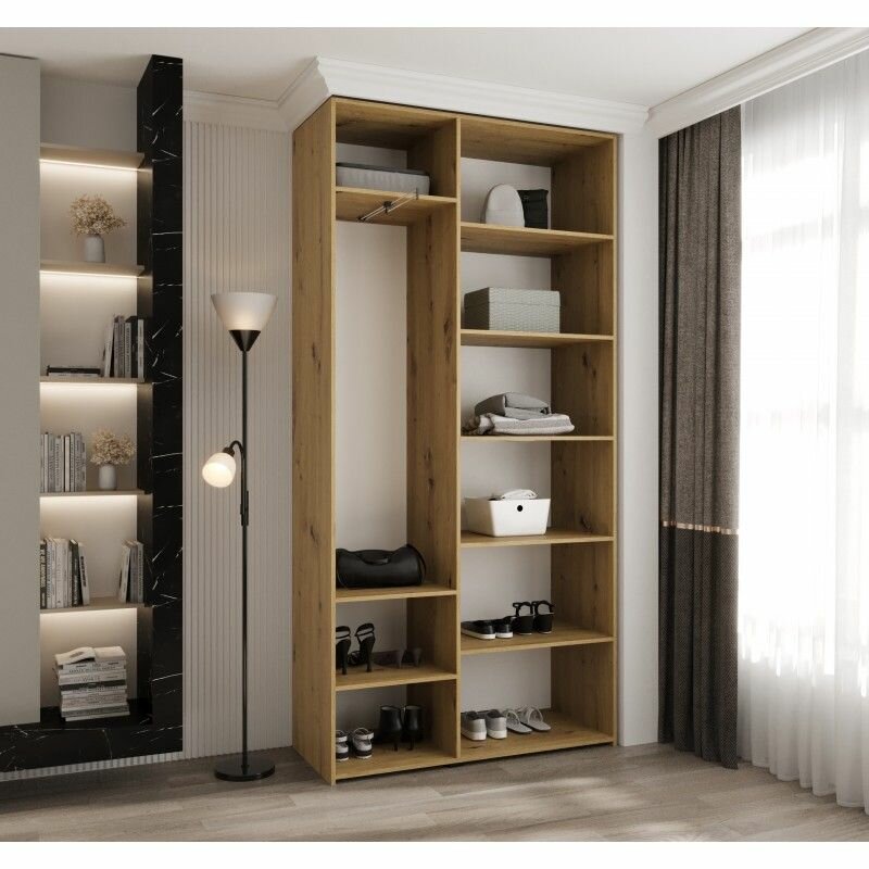 Шкаф для одежды распашной Нонтон Луас, 120 см, 7 полок и штанга, белый глянец