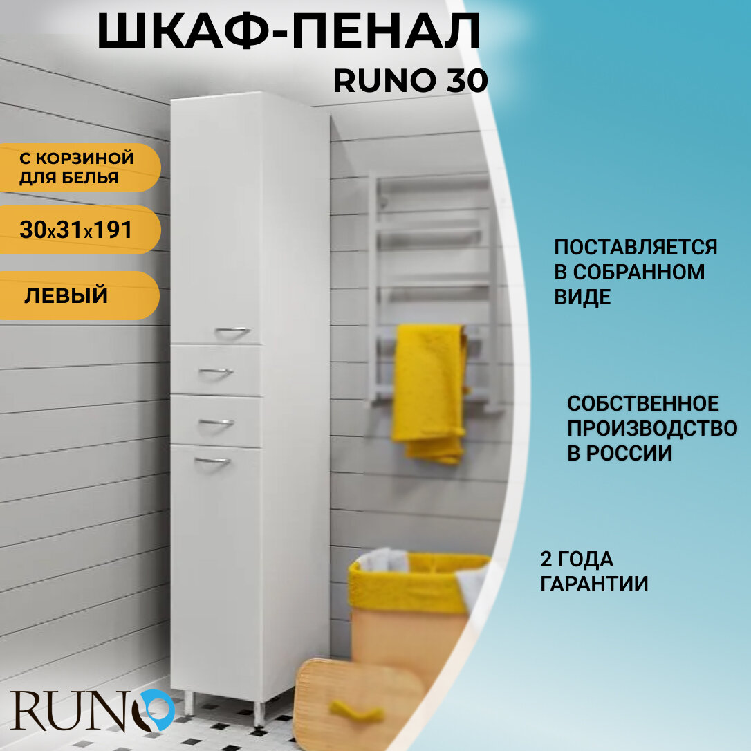 10 цен на Шкаф в ванную пенал напольный Runo 30 /левый, с корзиной для белья