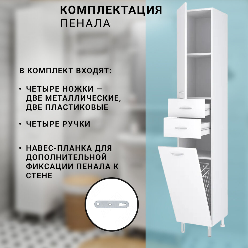 Пенал Runo Эконом 35х190 правый, с корзиной для белья, белый (00000000130) 15 560 ₽