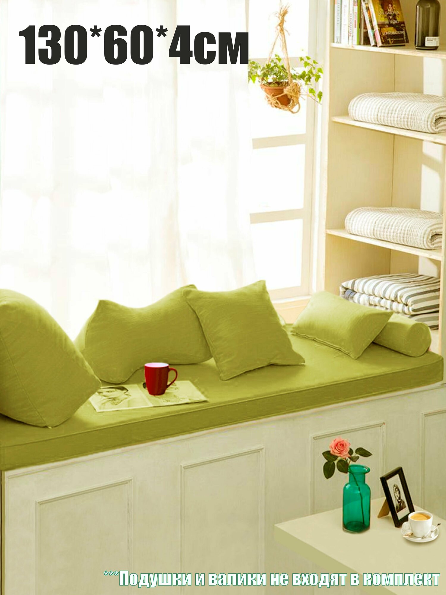 Матрас-подушка на подоконник 130х60х4см Mura Light Green, съемный чехол информация: