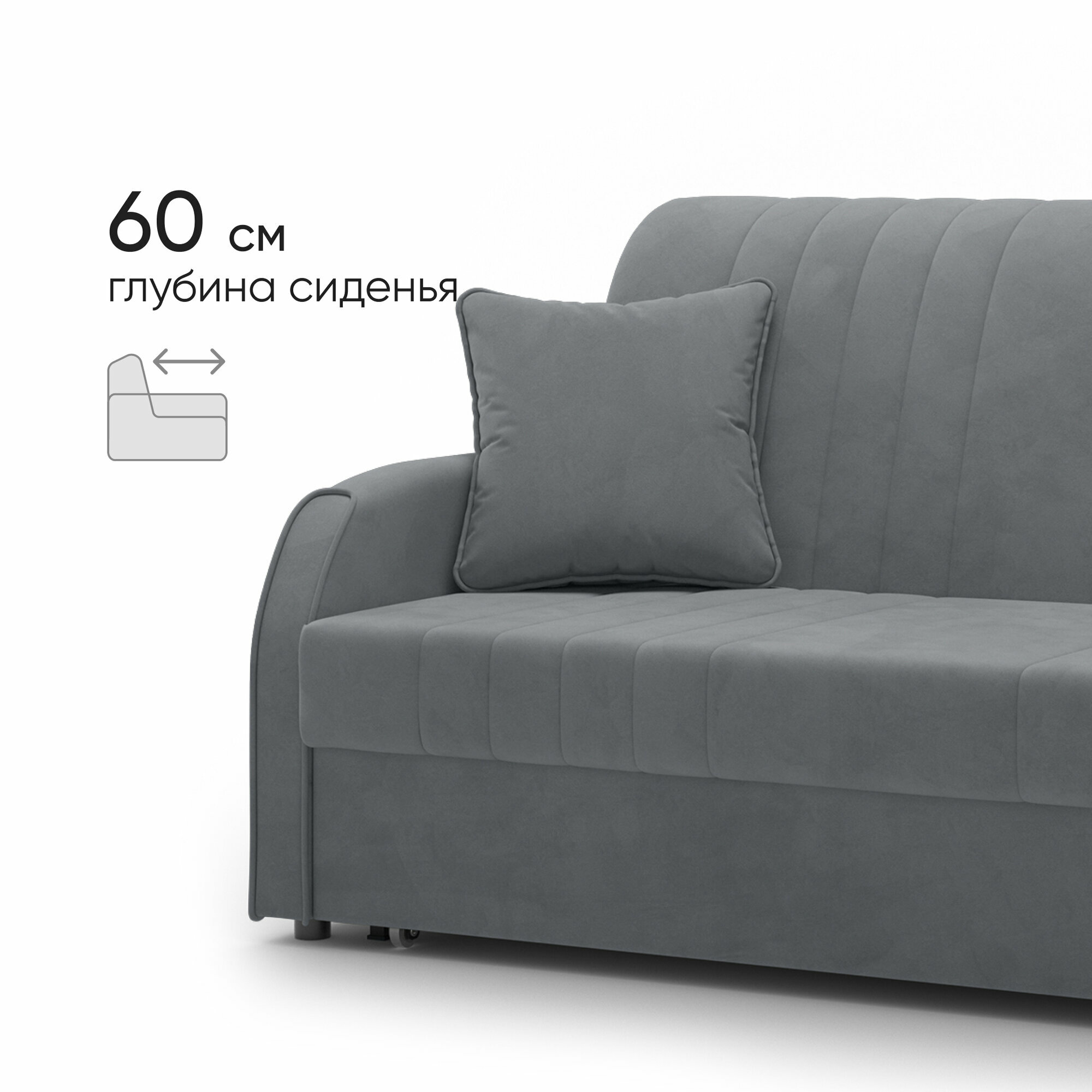 Диван-кровать раскладной Прямой на металлокаркасе, Аккордеон, ортопедический, 160х203 спальное место, Турин NEW, велюр темно-серый информация: