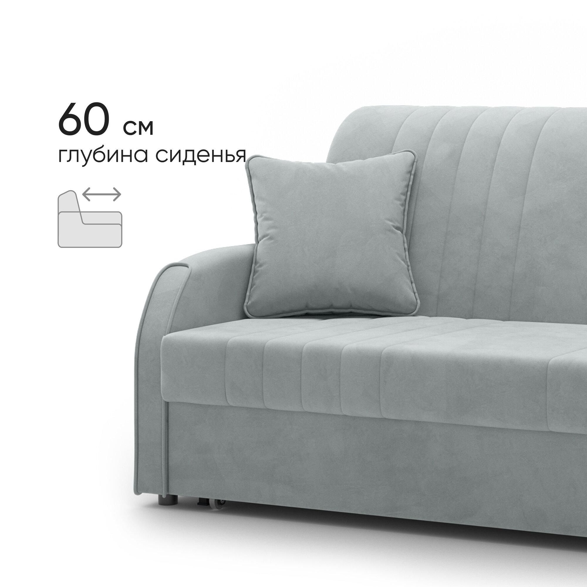 Диван-кровать раскладной Прямой на металлокаркасе, Аккордеон, ортопедический, 160х203 спальное место, Турин NEW, велюр светло-серый информация: