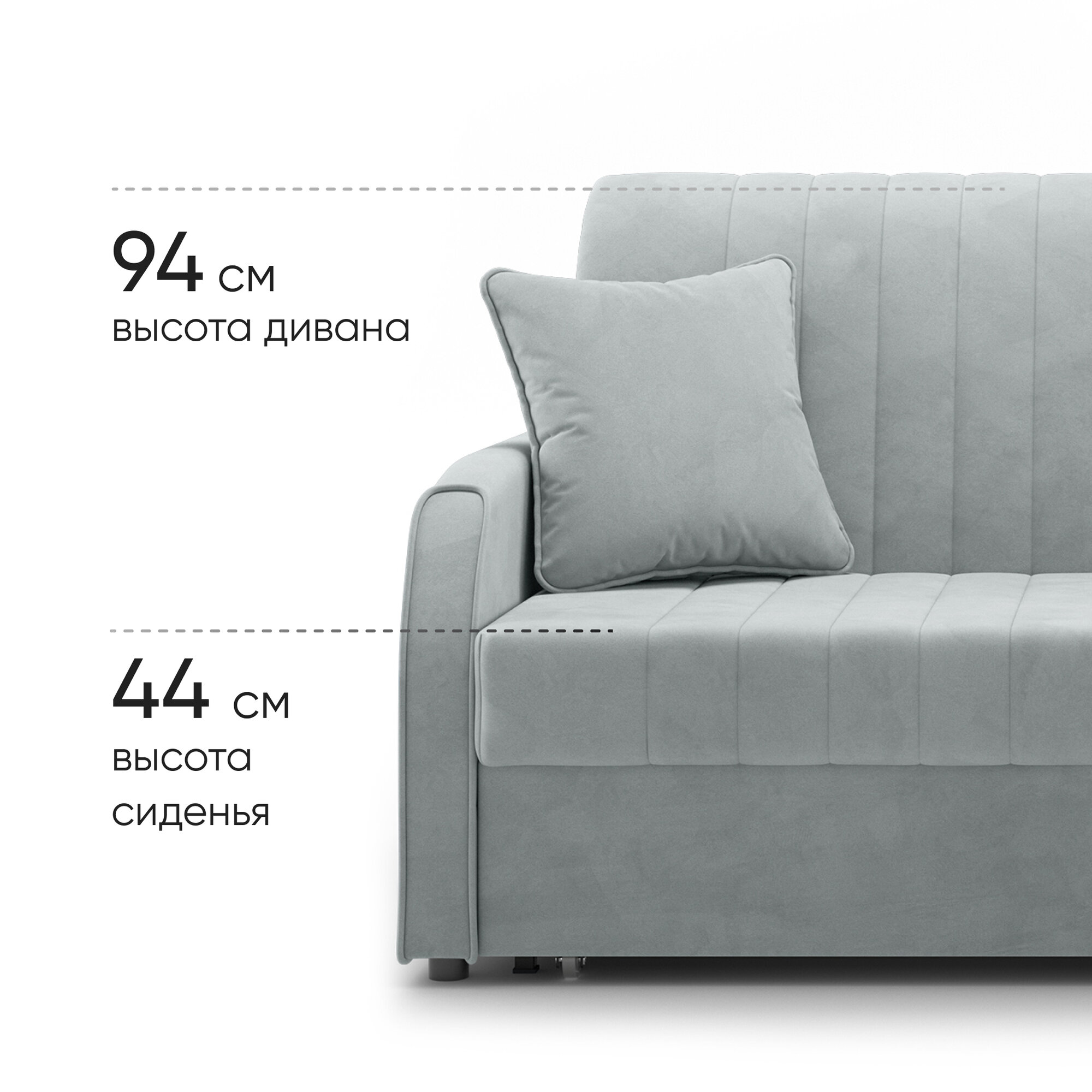 10 цен на Диван-кровать раскладной Прямой на металлокаркасе, Аккордеон, ортопедический, 160х203 спальное место, Турин NEW, велюр светло-серый